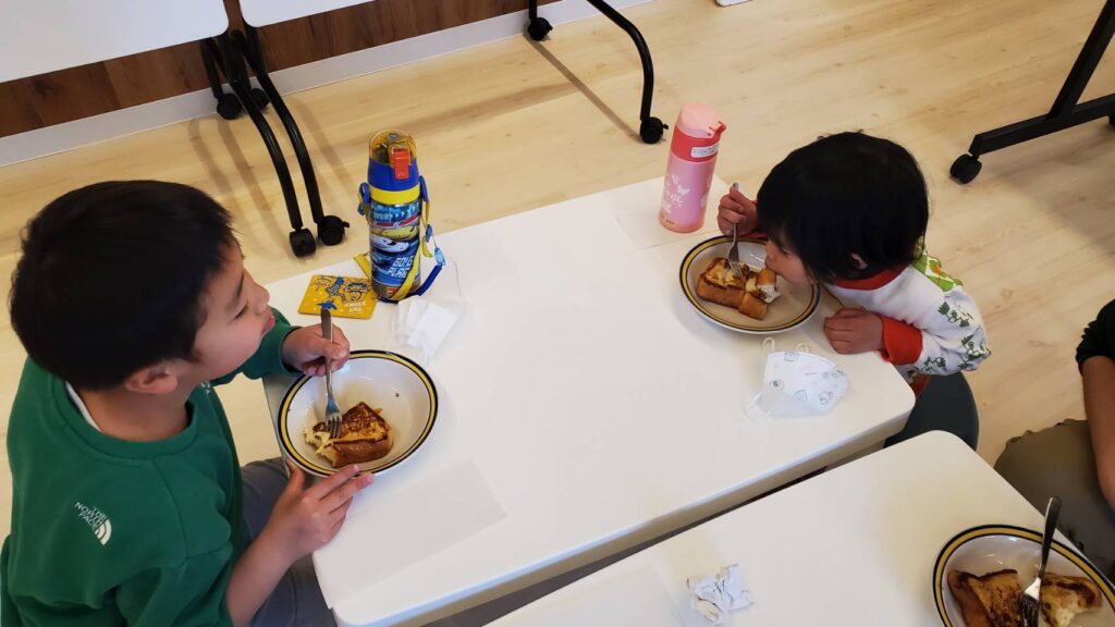 おやつはフレンチトースト!少し運動もしたらお腹がすいたかな?しっかり食べ切っていました!
