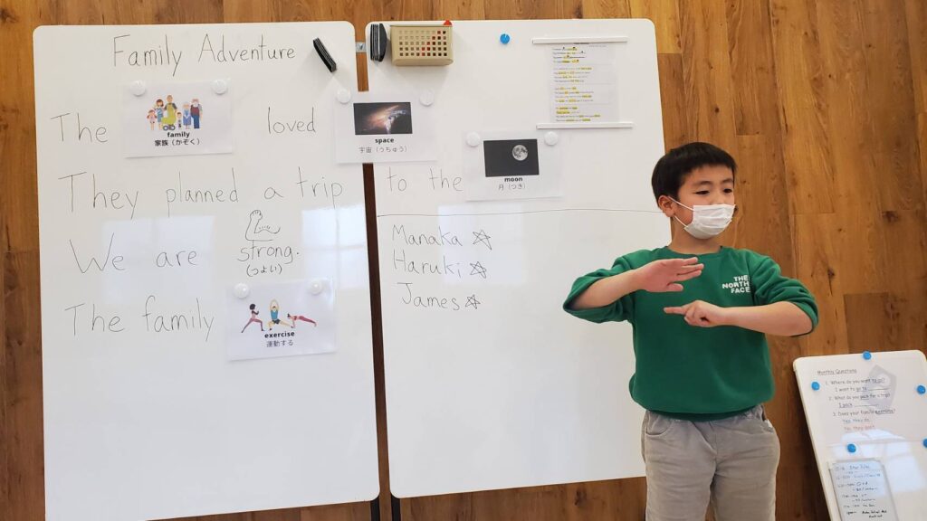 単語の意味をジェスチャーを交えながら発音して先生たちに発表してくれました!