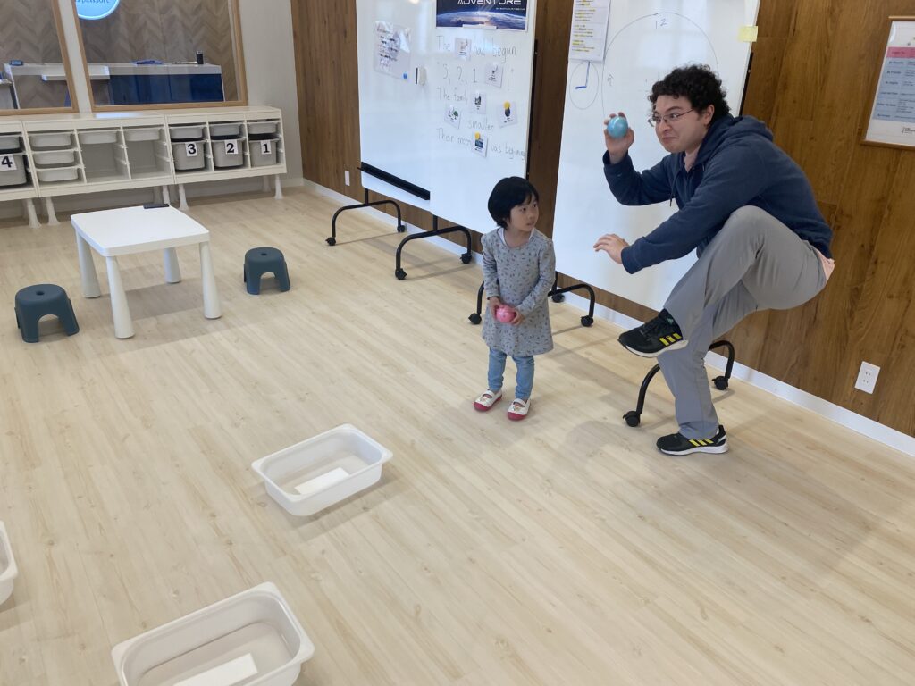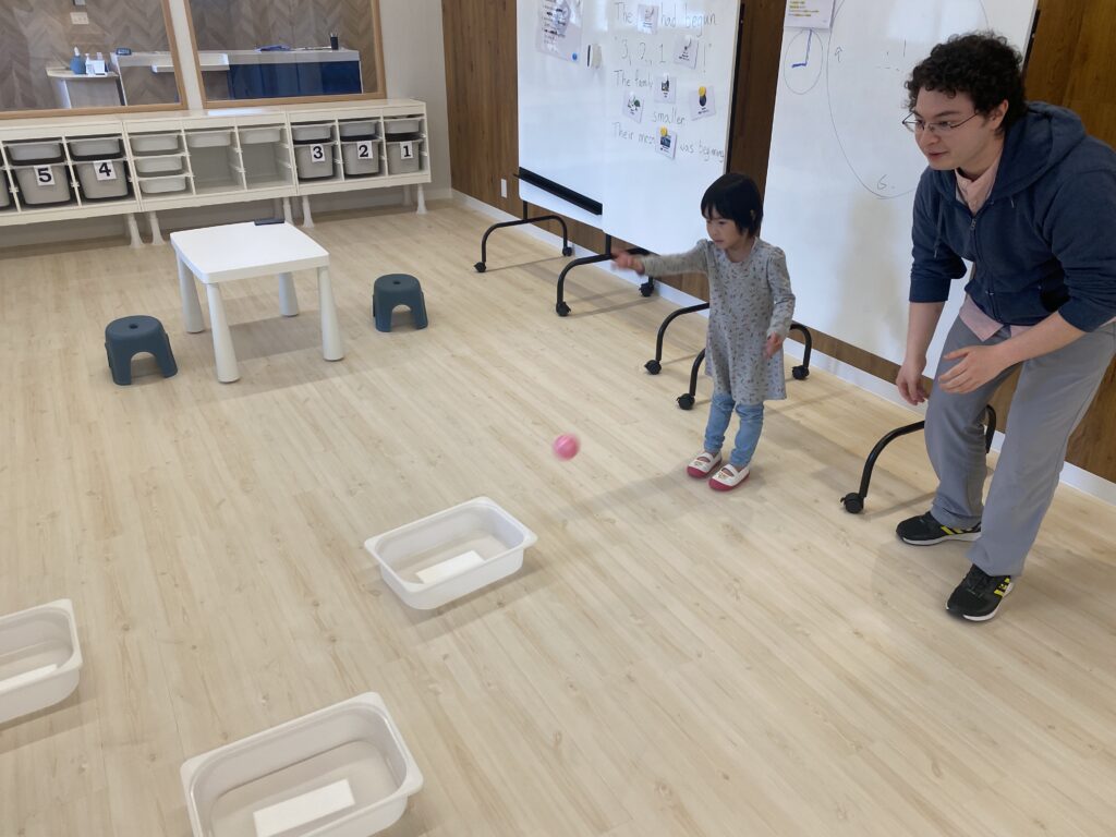 その後は、ボールをターゲットに向かって投げながら、単語の練習!?