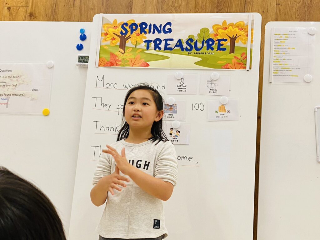 自分が発表するだけでなく、ジェスチャーをして、友達にもこうやって