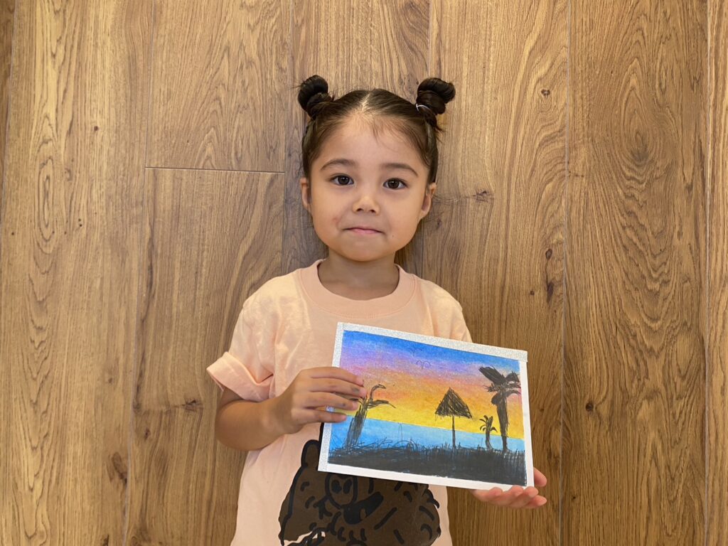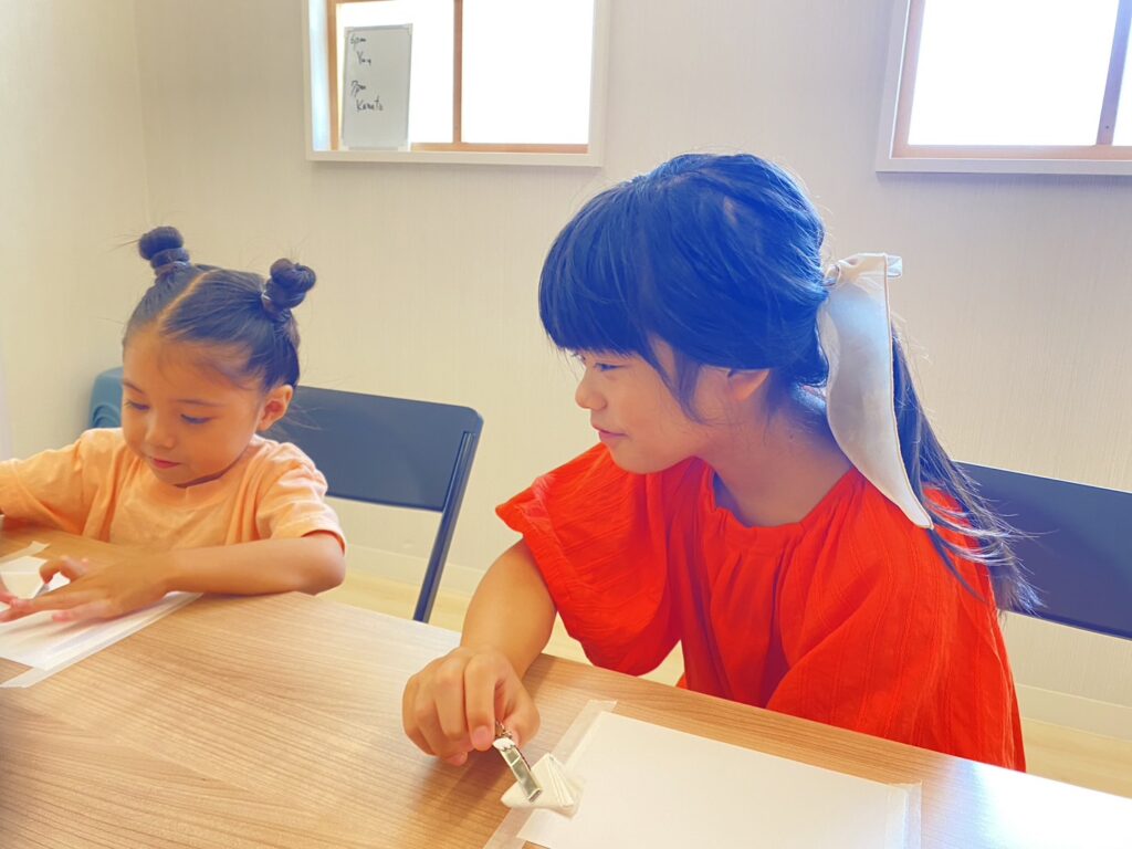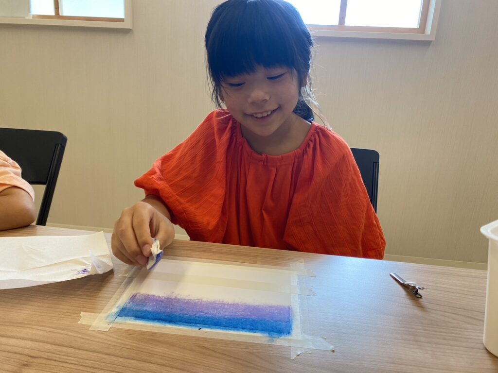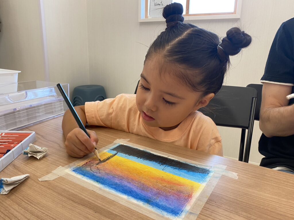 今日のサマースクールでは、オイルクレヨンを使って、アート作品を作りました!