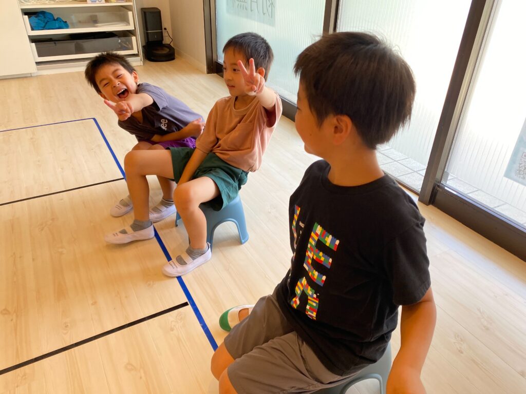 先生:Oh! You are out! Go to the other side! あ!アウトだよ!向こう側に行って!