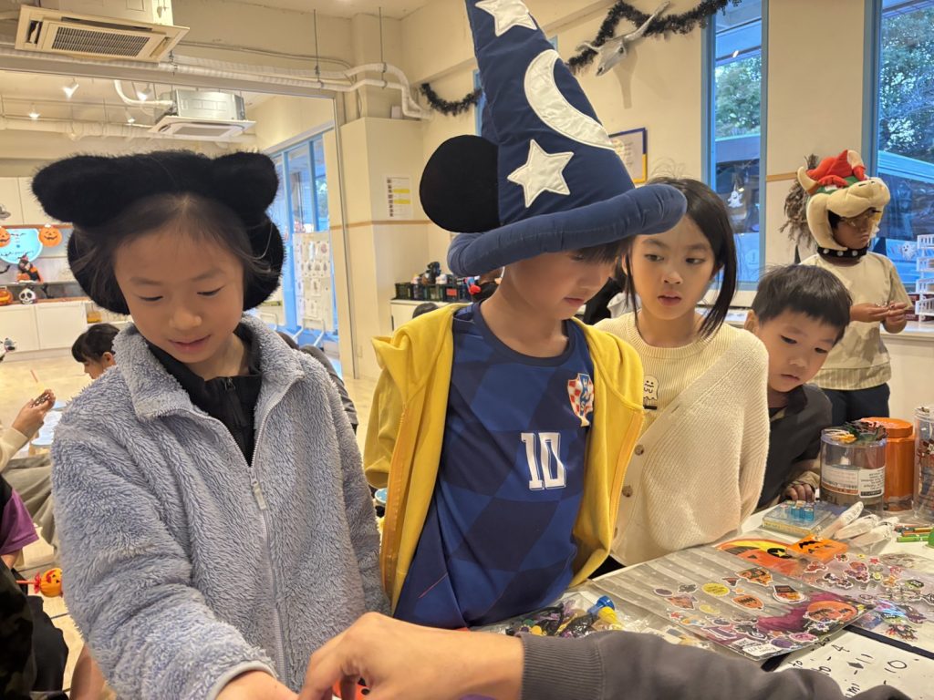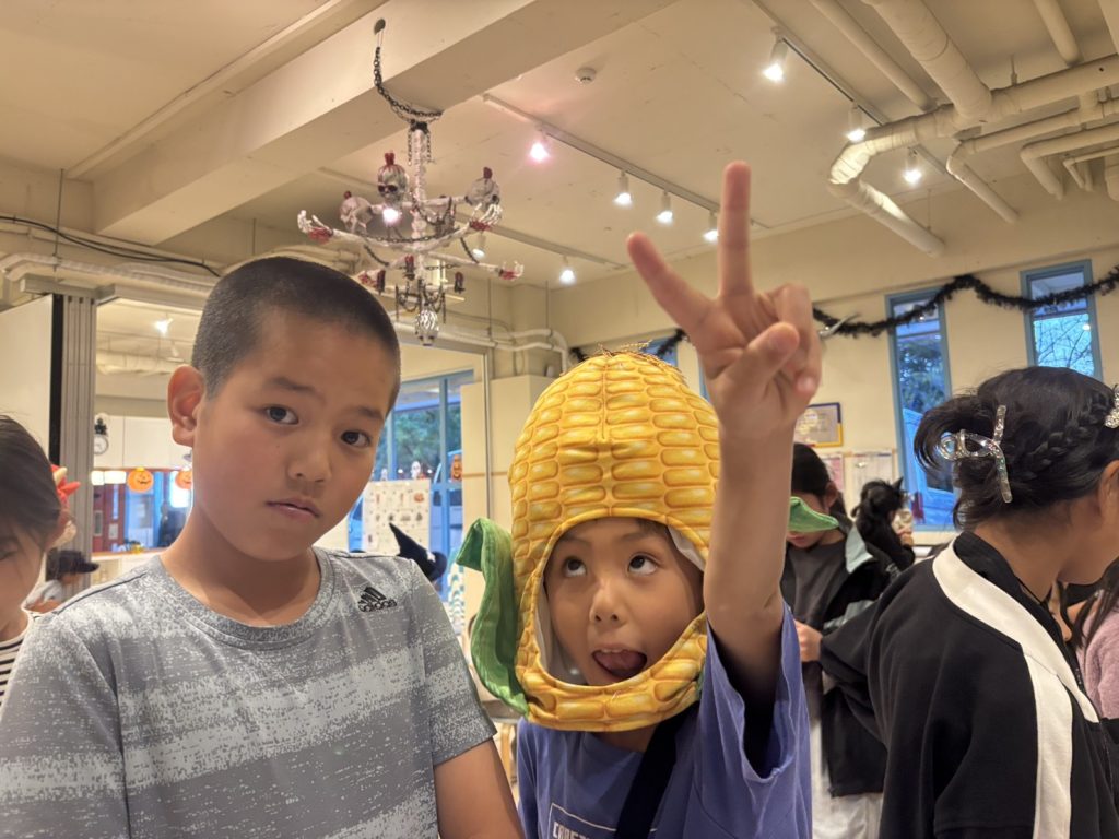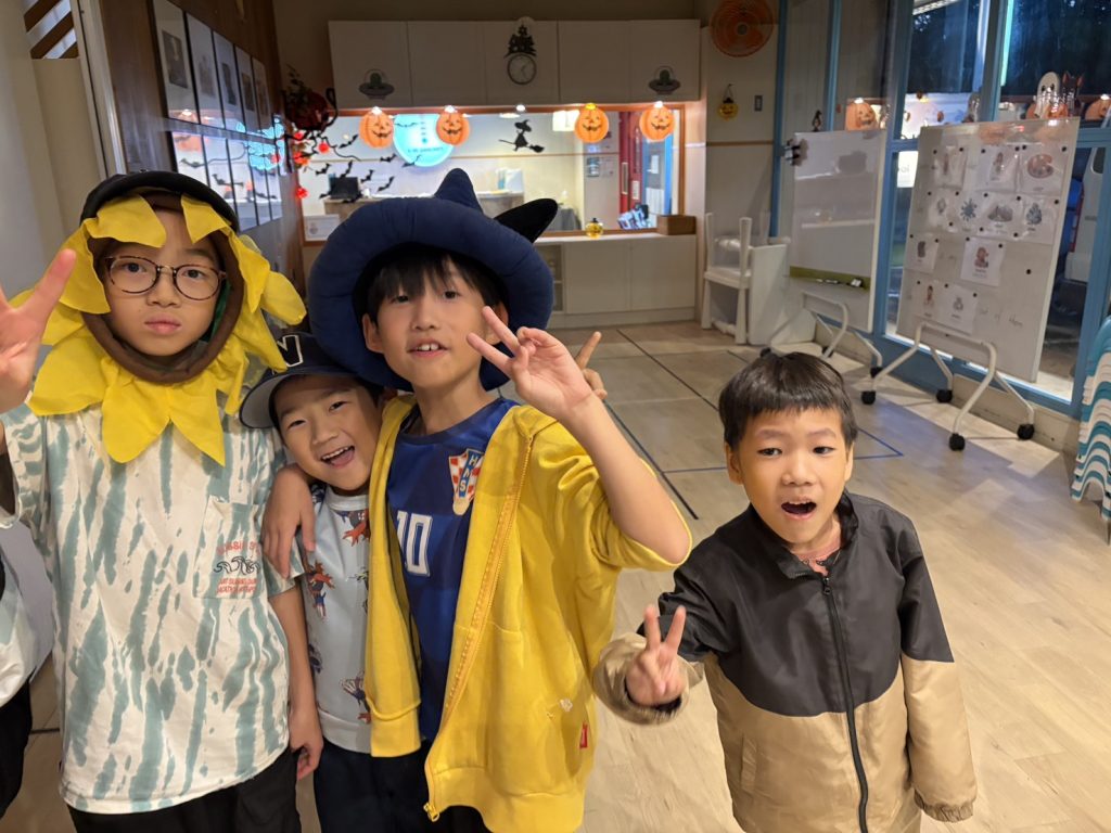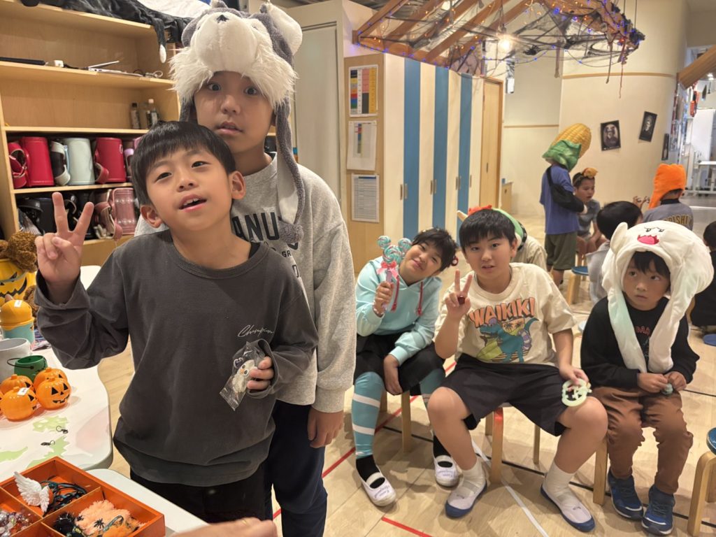 子どもたちのテンションはマックスでスクールに着いて早々、各々の衣装に着替えたり先生たちと脅かしあったりととっても楽しそうでした!