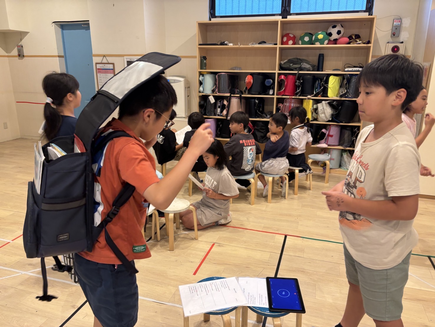 宿題をやることで理解が深まったり、セブンスタールールのAlways try (いつもチャレンジする)に繋がるということを伝えました!みんなメインクラスにはやく行きたいと気持ちが強くその話をしている間、真剣に話を聞いていました!