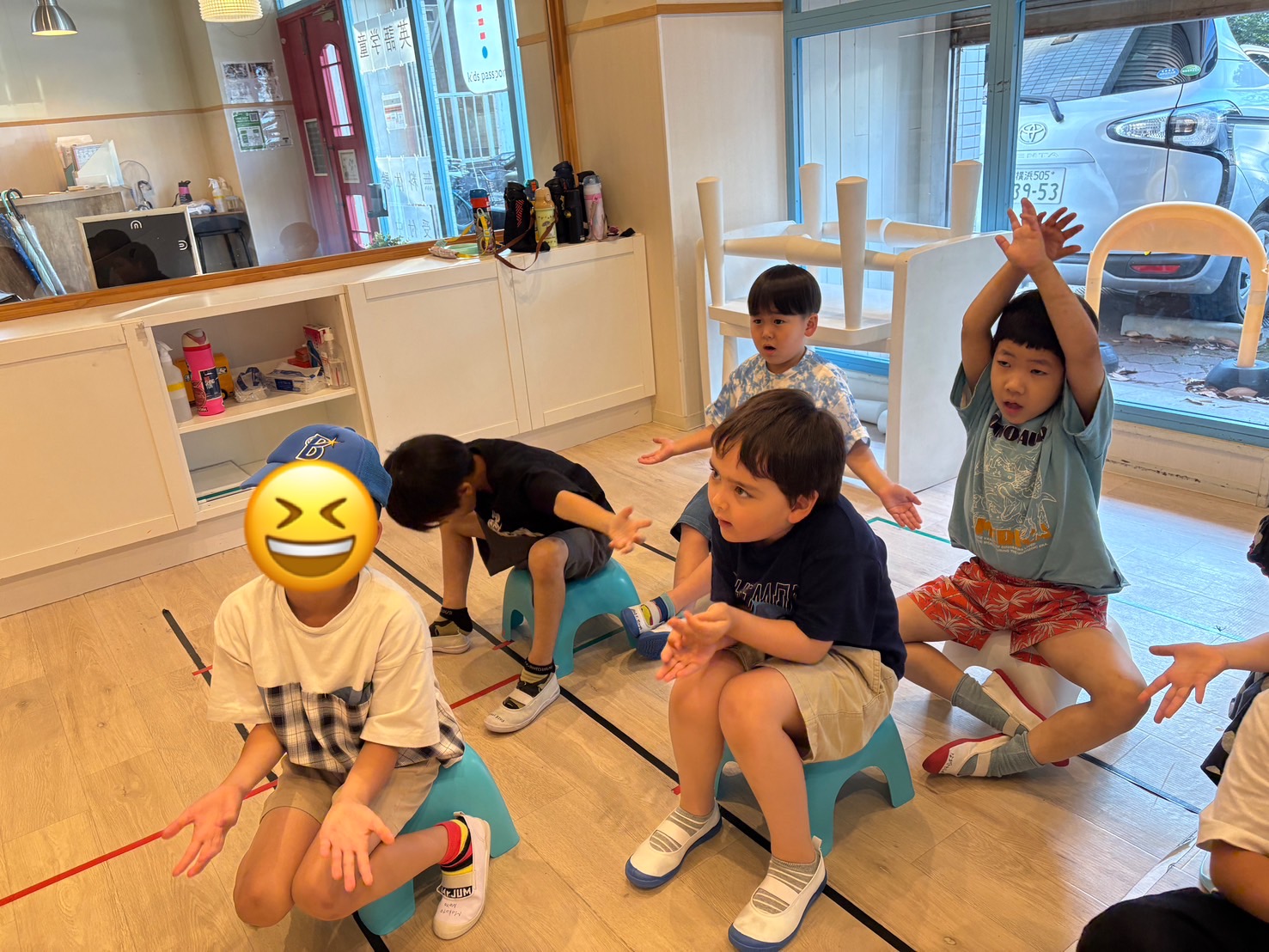 四月に入ったプレクラスの子たちもだいぶ英語のみの環境にも慣れ、キッズパスポートのルールや過ごし方に関しても理解が深まってきました!そろそろメインクラスに行く子が出てくるかなと言うことで、ワークショップの終わりにどのようにしたらメインクラスに行けるのかと言うお話をしました!