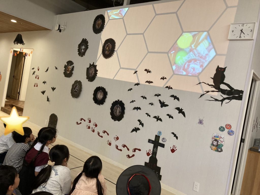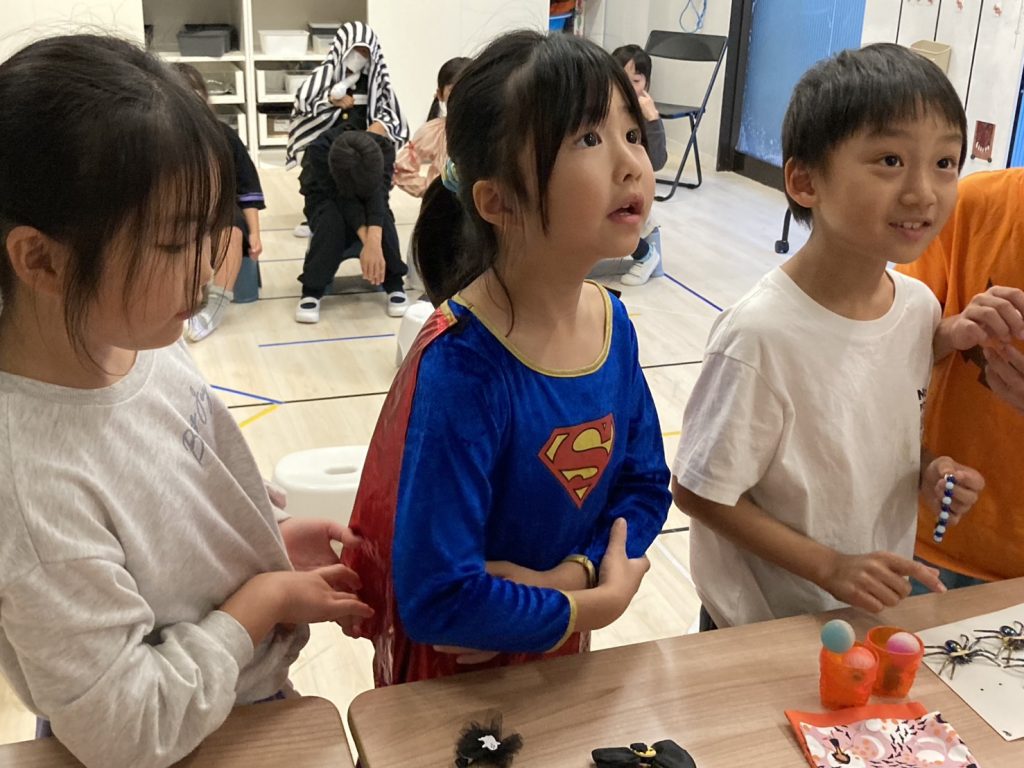 ハロウィンデー2日目でした!!火曜日は月曜日よりも人が多いので、先生達はより盛り上がるんじゃないかって思い、胸に期待を寄せていました!!そして、期待通り、今日もみんなが楽しんでくれた1日となりました!!特に今週は先生たちがよりハロウィンを楽しんでもらおうとキッズパスポート初のお化け屋敷まで作りました!!より一層お化け屋敷を怖がってもらうためにキッズ向けのホラーアニメを見て気味の悪さを演出しました(笑)いざそのアニメが始まるとみんなの視線は一点集中!!お化け屋敷も怖い雰囲気がずっと流れ、最高のハロウィンデーとなりました!!