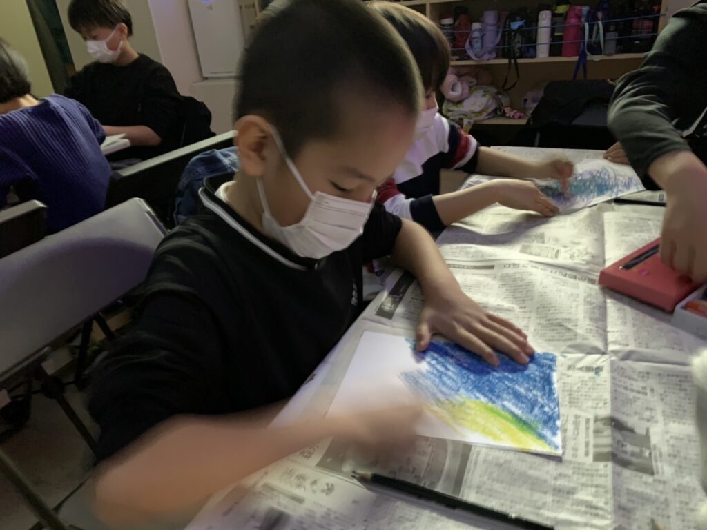 元気な曲のときはみんなノリノリで色塗りをしました♪