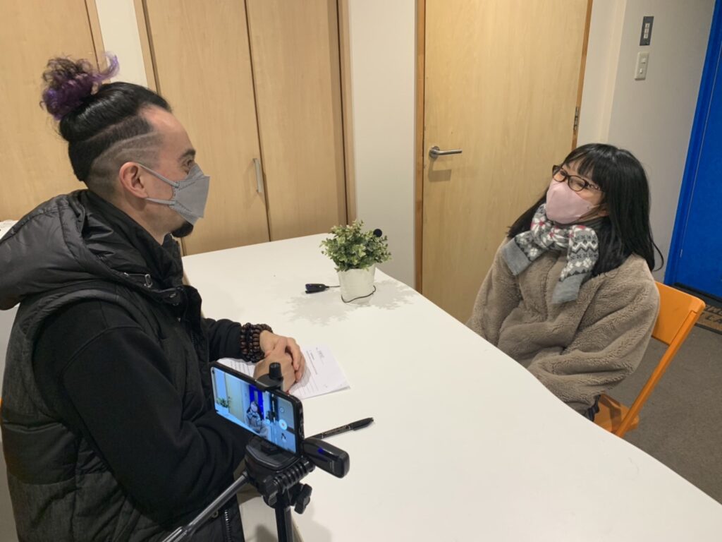 (お母さん、お父さん、お兄ちゃん、おばあちゃんと私が住んでいます)