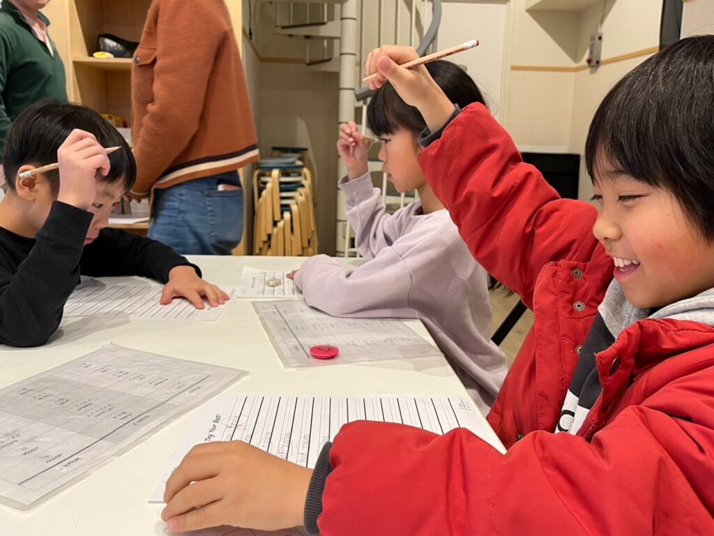 (えんぴつをあげて、3,2,1,ゴー!)