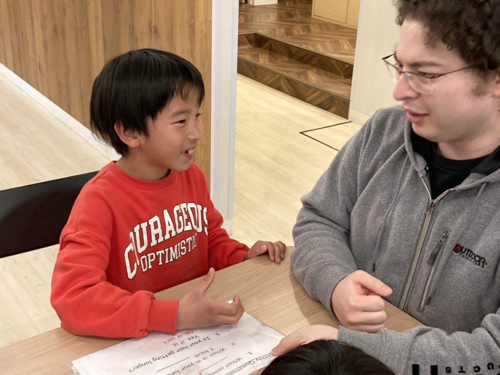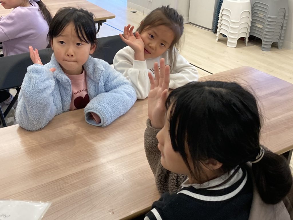 今日からキッズパスポートでは珍しい運動が出来るQ&Aアクティビティのフェイスオフです!今回のストーリーの”The Great Fluff”は他のストーリーと比べると飛躍的簡単な方だと青葉の先生は言っており、その予想は的中してて、生徒全員がある程度英語にもたくさん触れ始めてから時間もたった時期ではありますので、Q&Aの内容自体はみんなすんなり頭に入ってきました!!いざフェイスオフが始まるとどれも接戦で先生達も見応えをすごく感じていました!!まだまだ今週はずっと接戦が見れると思うと楽しみですね!!