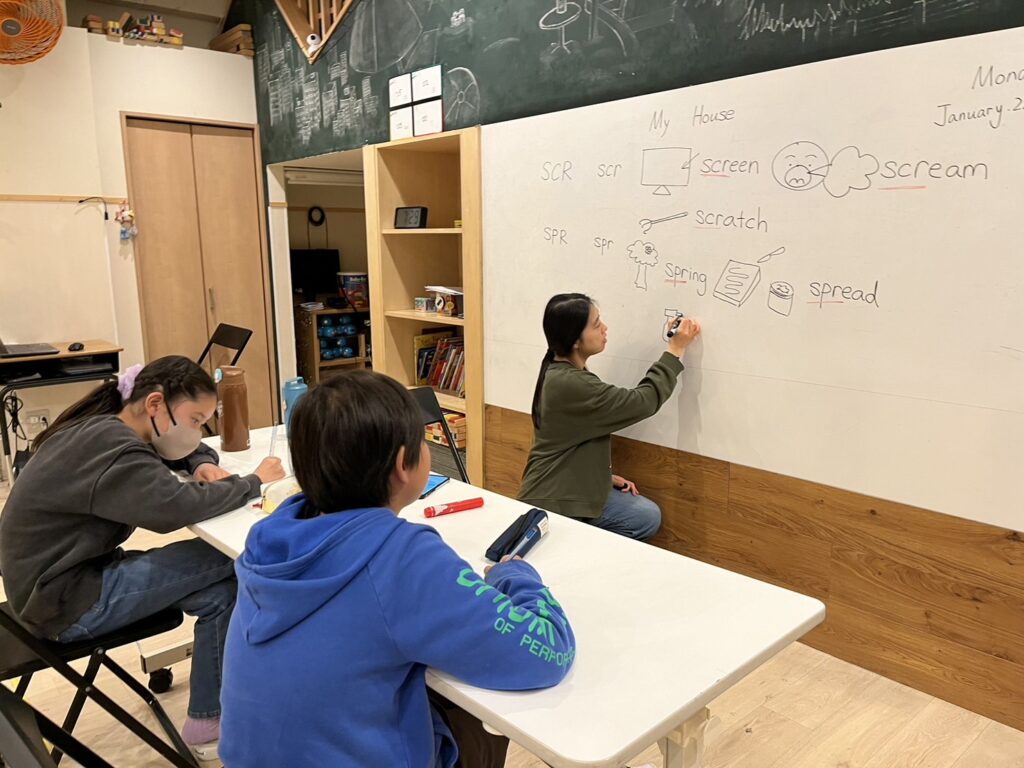 実際にマグネットを使って見せながら、数字の数え方について学んでいました!
