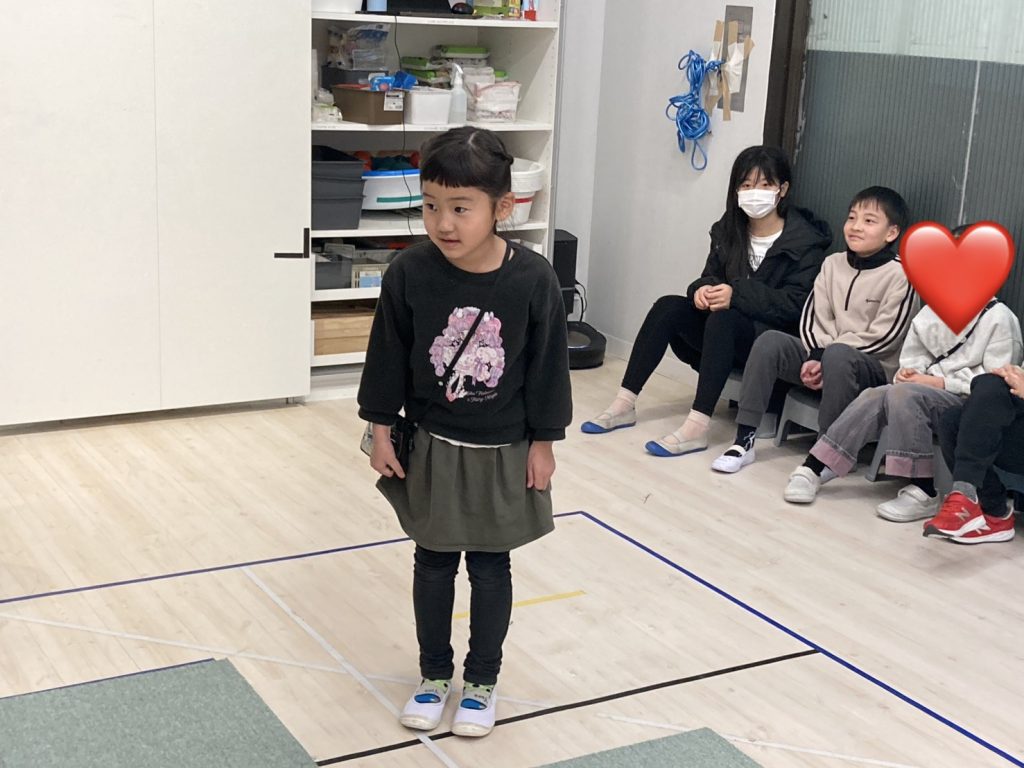 時間が進むのも早いもので気づけばもう1月中旬でストーリーもパート3になりました!!そして金曜日という事で生徒全員がそれなりストーリーに馴染みが出てきたため、熱心に練習してくれました!!そして馴染むのも早かったので、誰しもが早く自分の力を試したくて全員が“One by one okay?”(一人で発表してもいい?)と言ってくれました!!そしてそんな期待を先生たちは応えたいと思え、早速一人でずつ見ていく事に!全員が想像以上のパフォーマンスを披露してくれました!!このまま発表に向けて頑張ろう!!
