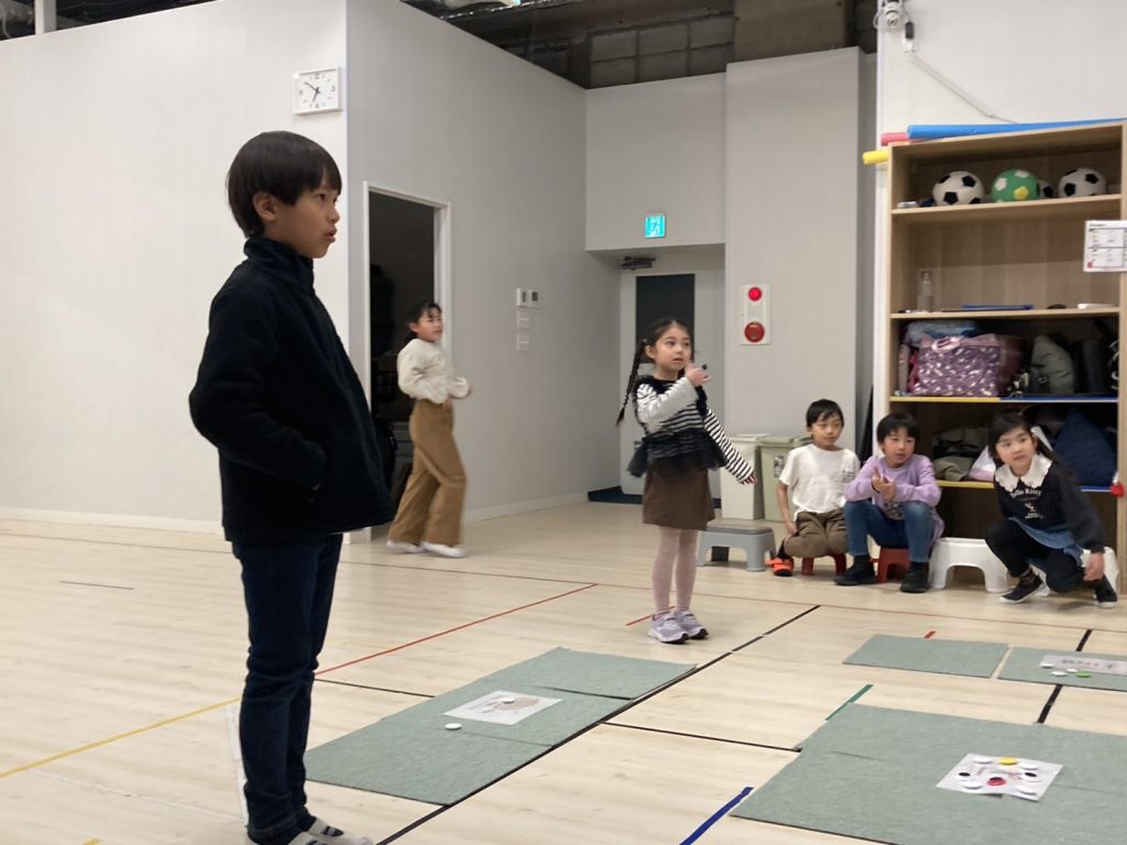 ゲームタイムもたくさんエンジョイしました!!行ったゲームはいたってシンプルでいっせーのせで同時に飛び、同じブロックに対戦相手と同じブロックに飛んでしまったら、ポイントが入らないとという心理ゲームで、互いの読み合いですごいわくわくしました!!
