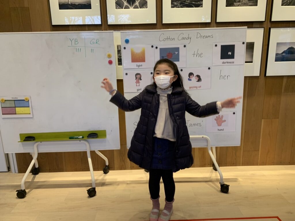 (顔に点を持つうっすら光る可愛い女の子が彼女をじっと見ていました)