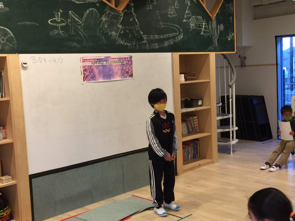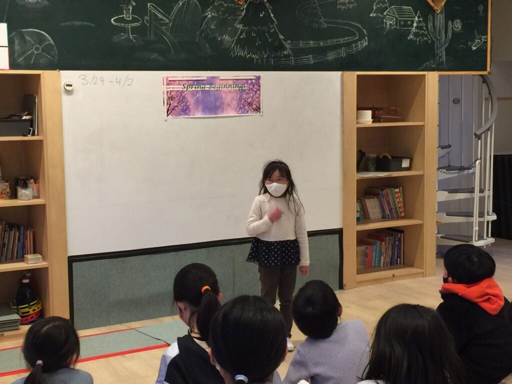 今週はSpring Beginnings(春のはじまり)のパート2です!月曜日にも関わらずお家でたくさん練習してきてくれ、とっても上手な発表をする生徒さんもいました!Great job! がんばったね!