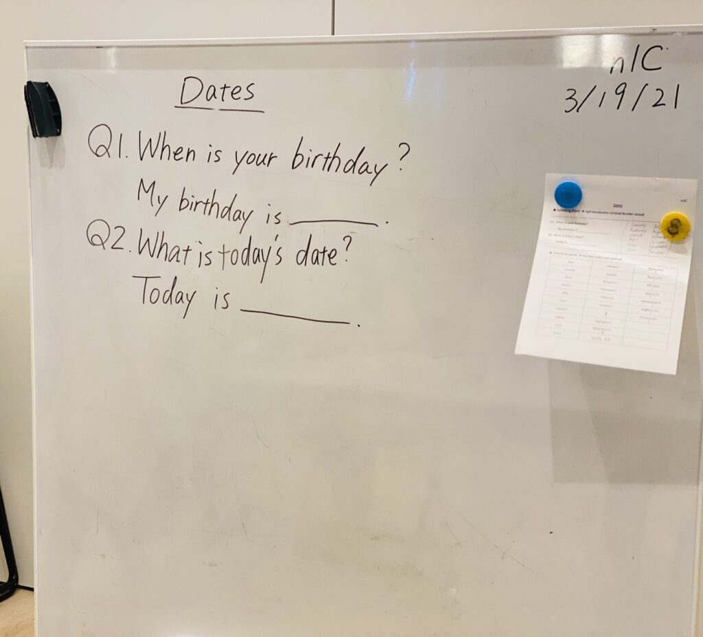 1つ目のクラスでは”Dates”(日付)のスペリングについて勉強しました