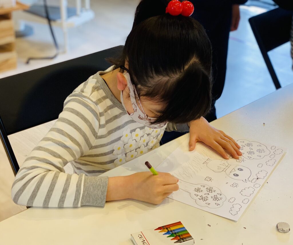鉛筆で絵を描き終わったら、自分が好きな春の風景を描いたり色を塗っていきました