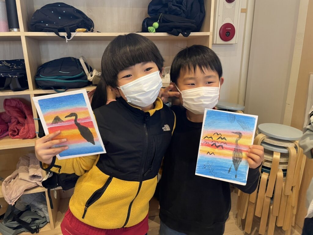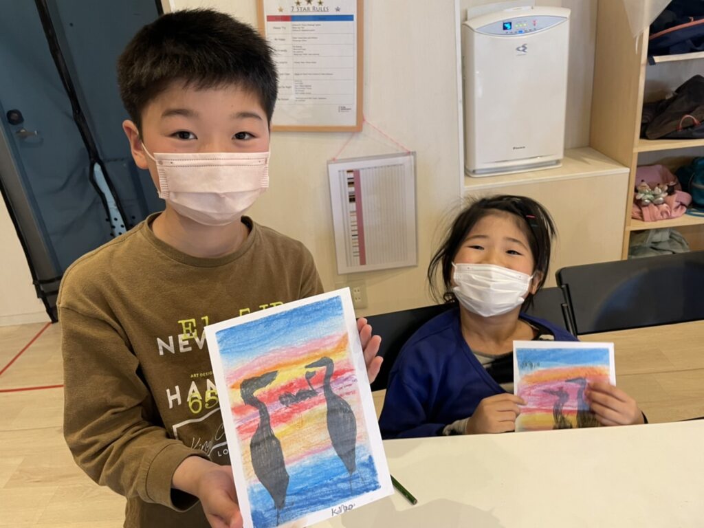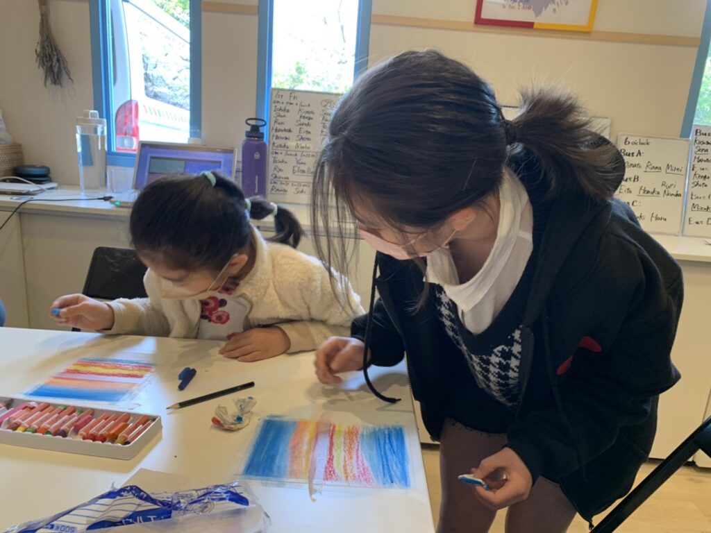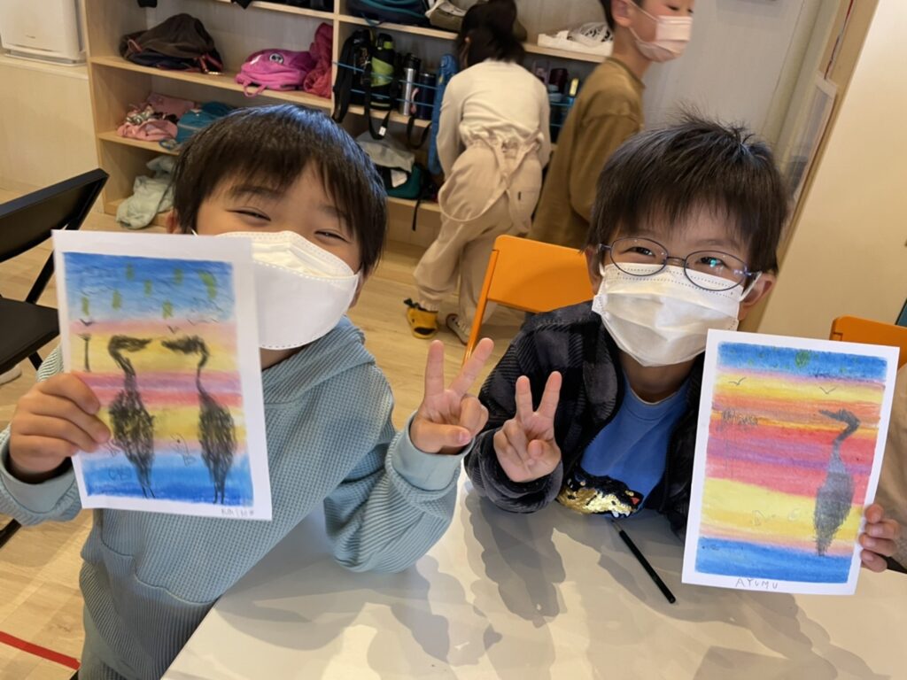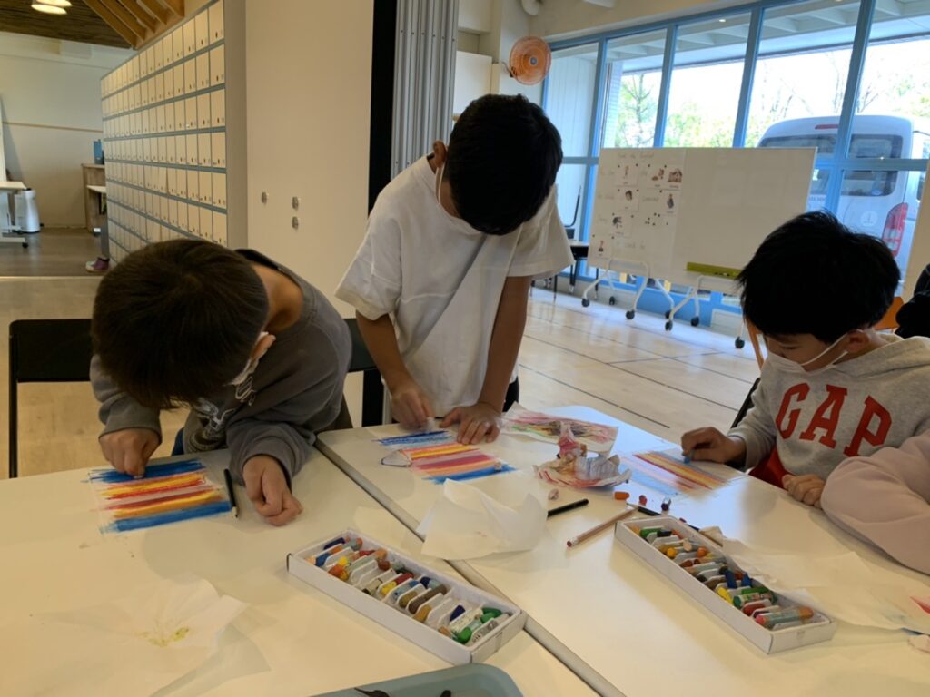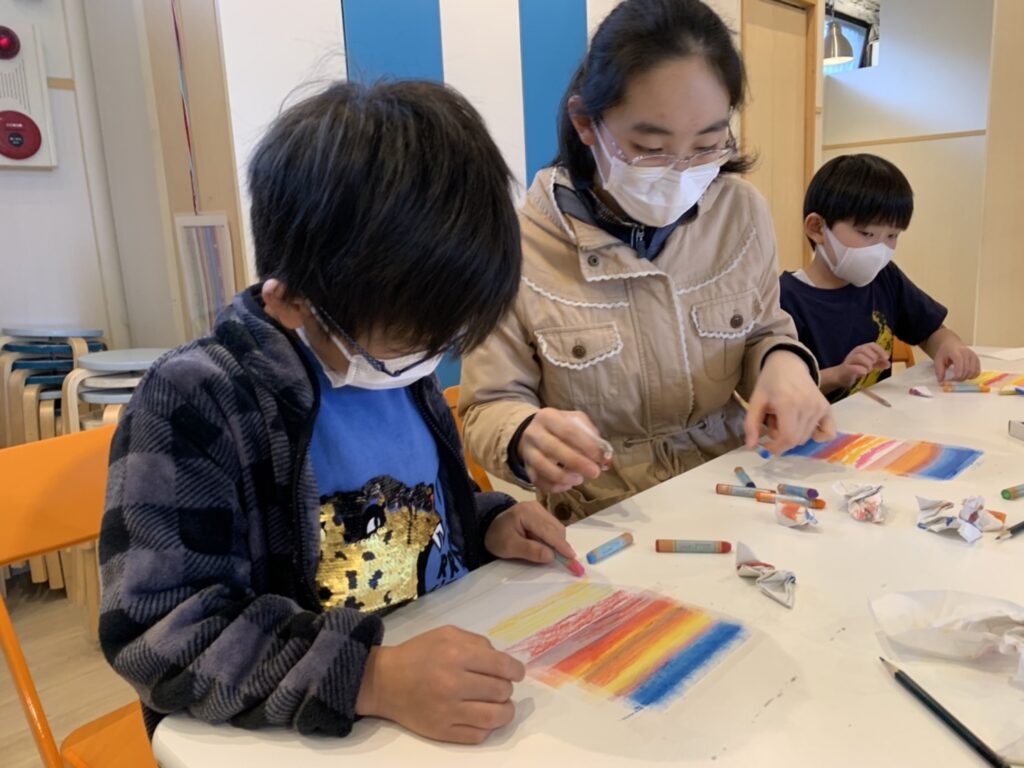 はじめてオイルクレヨンを使う人もいて最初は難しそうにしていましたが