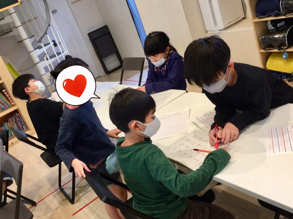 メインクラスでは読み書きの練習をしました