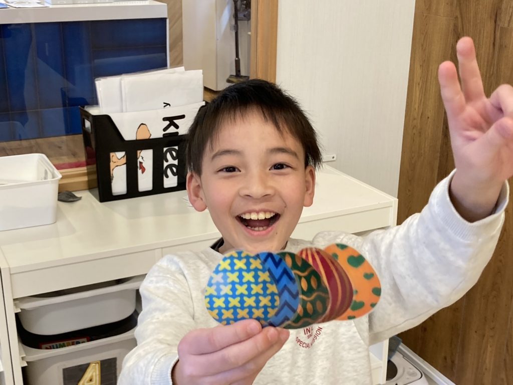 タイトルの通り、少し遅めのイースターイベントを行いました!!スプリングスクールではできなかったから…というわけではなく、今日はプリエリアとメインエリアが混合して、より人数が多く、そして楽しくキッズパスポートで過ごせたらなという事でした!!行った事はとてもシンプルで、先生が生徒達が集まってくる前にラミネートしてある卵のイラストを教室どどこかに貼り、その隠された卵を生徒みんなで探そうというものでした!!このルールだと、プリエリアの生徒も長年いる生徒に引けを取らせないので、みんな楽しくできたかなと思います!!!