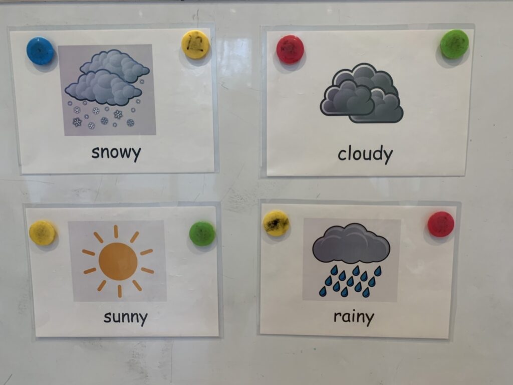 プレエリアのワークショップでは天気について学びました