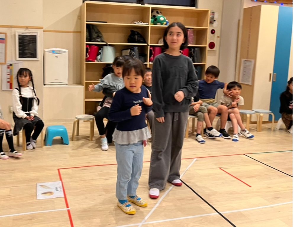 先生のカウントダウンでみんな慌てて移動し、お友だちと一緒に間違ったボックスに移動しちゃう子も (笑)