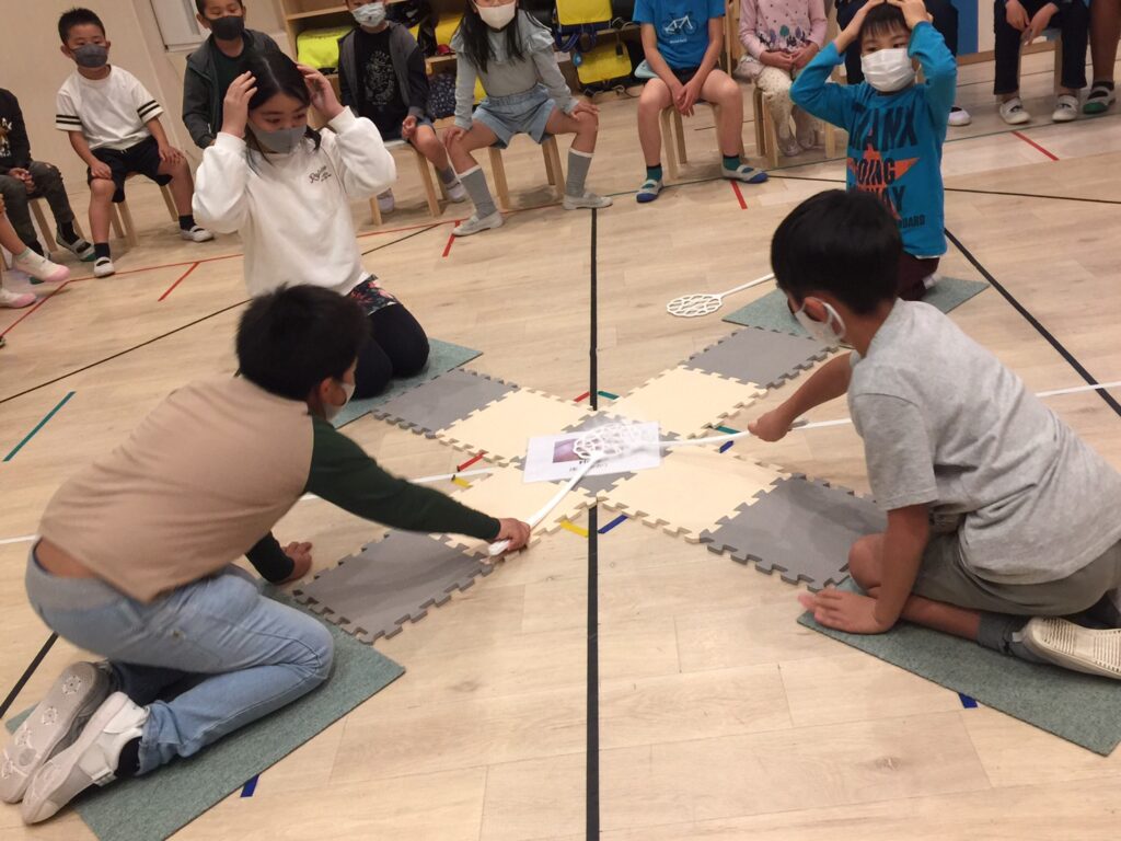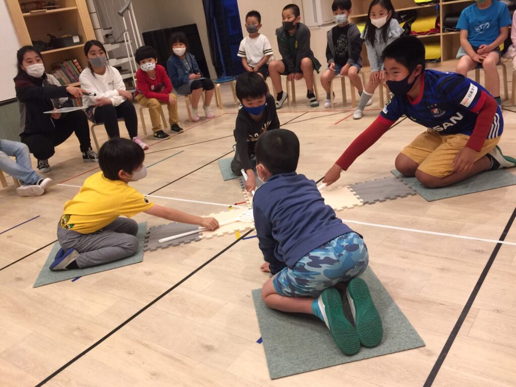 チームで練習をして1人ずつ前に出て競い合いました