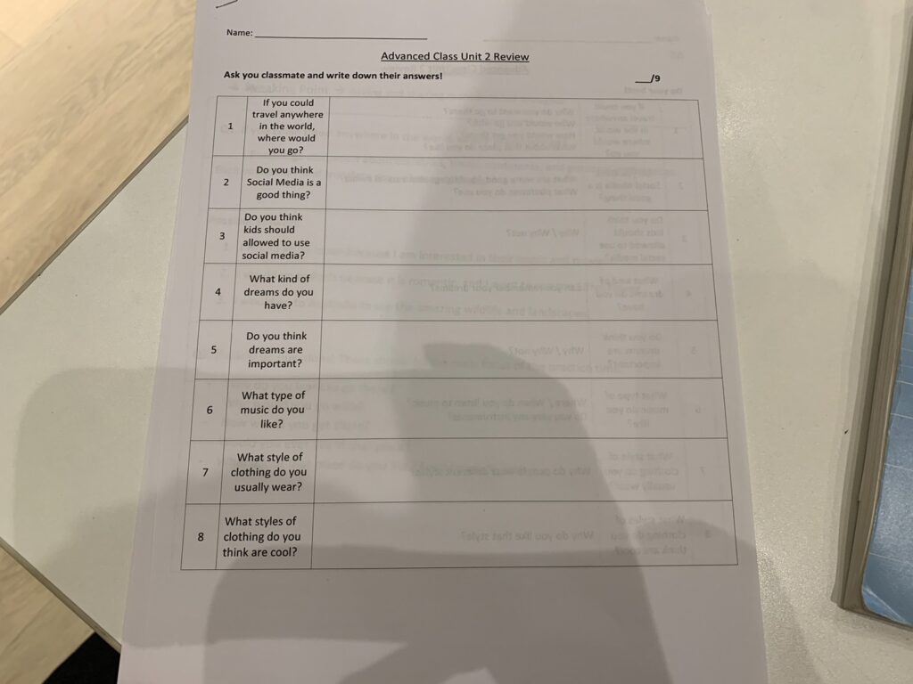 スピーキング中級クラスも来週テストデイ!
