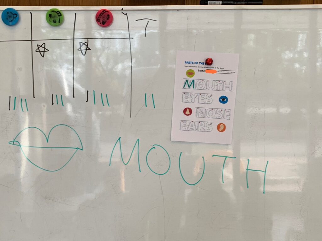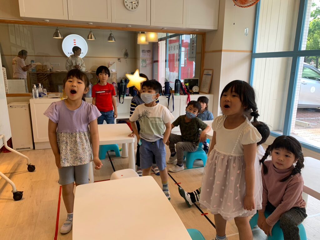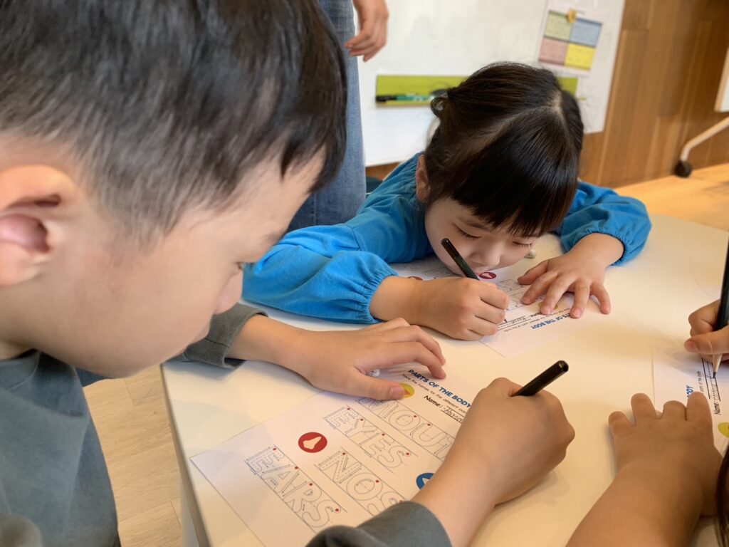 プレエリアのワークショップでは顔のパーツについて学んでいます!