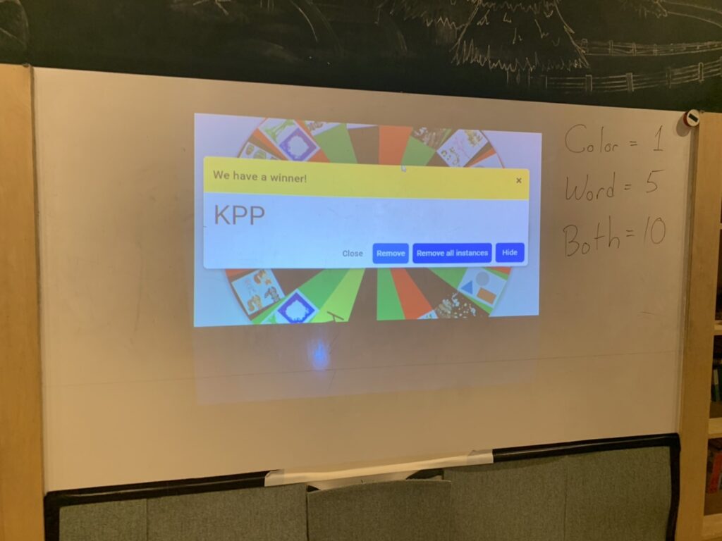 ルーレットがその色と単語を当たれば10ポイント