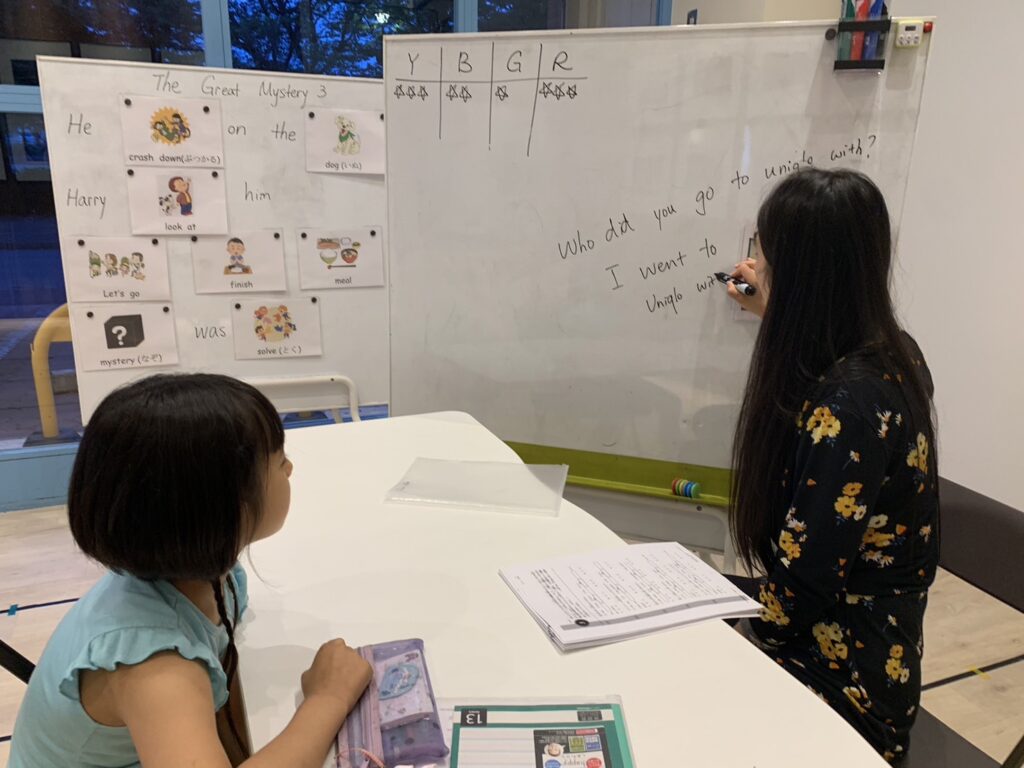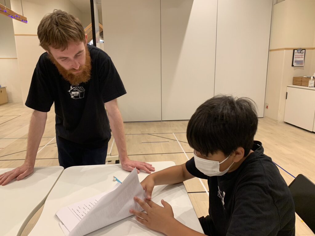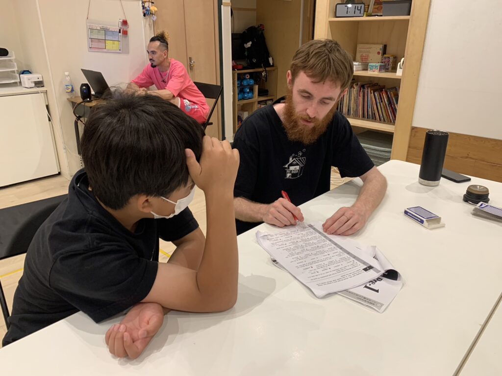 課題の穴埋め問題が終わり先生にチェックしてもらっていました