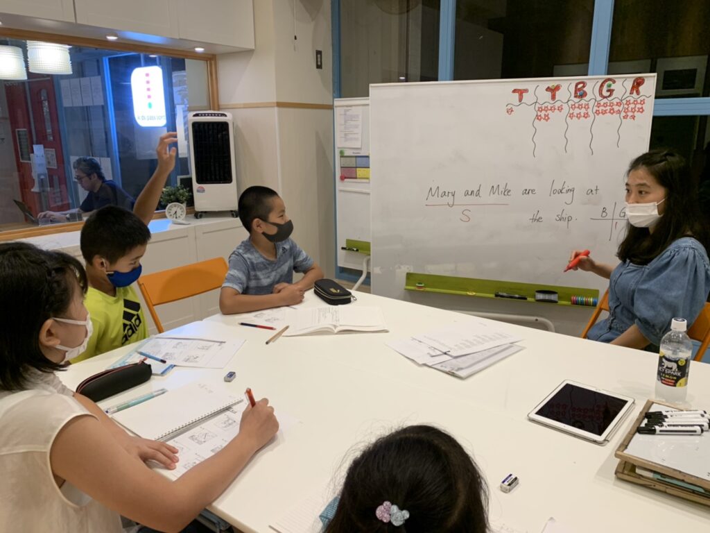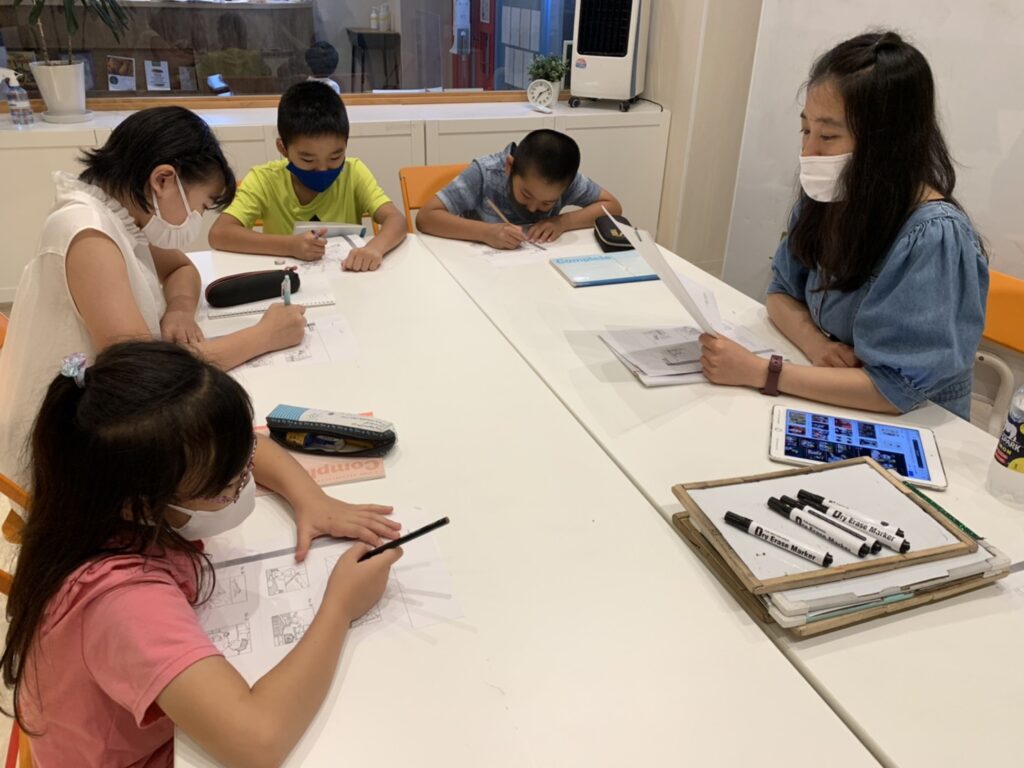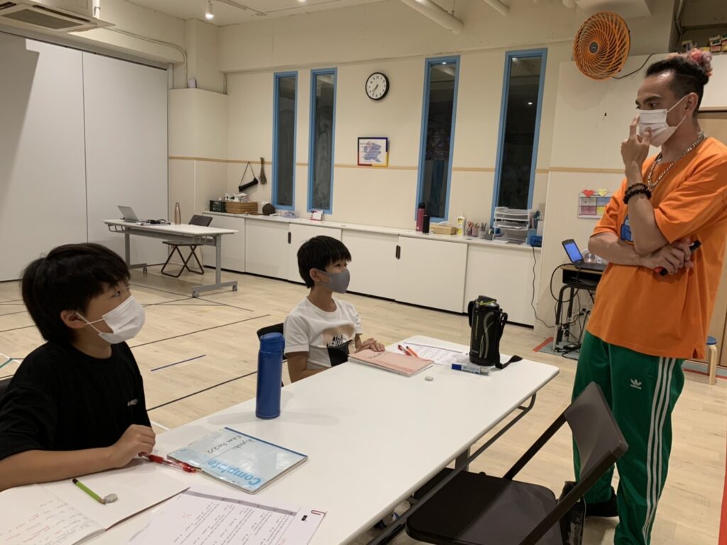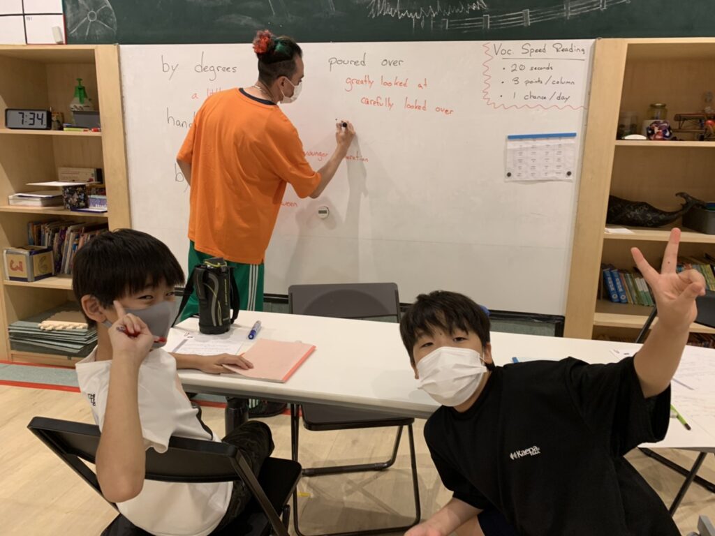 分からないときは先生が例文を出して正しい意味を確認しています