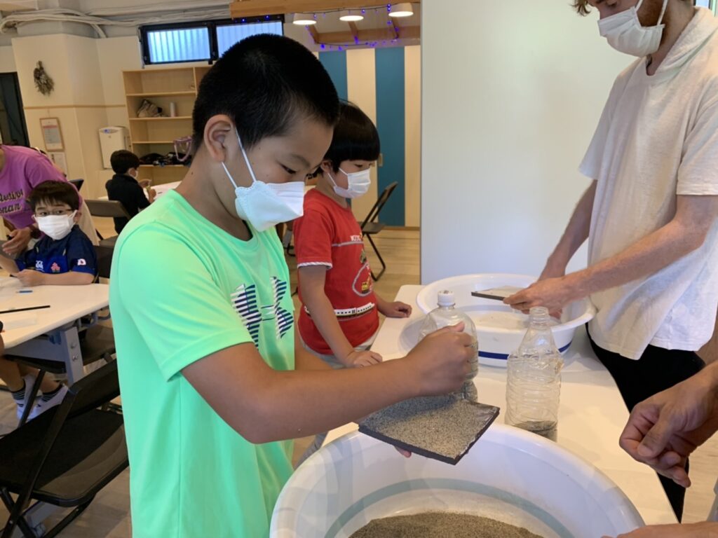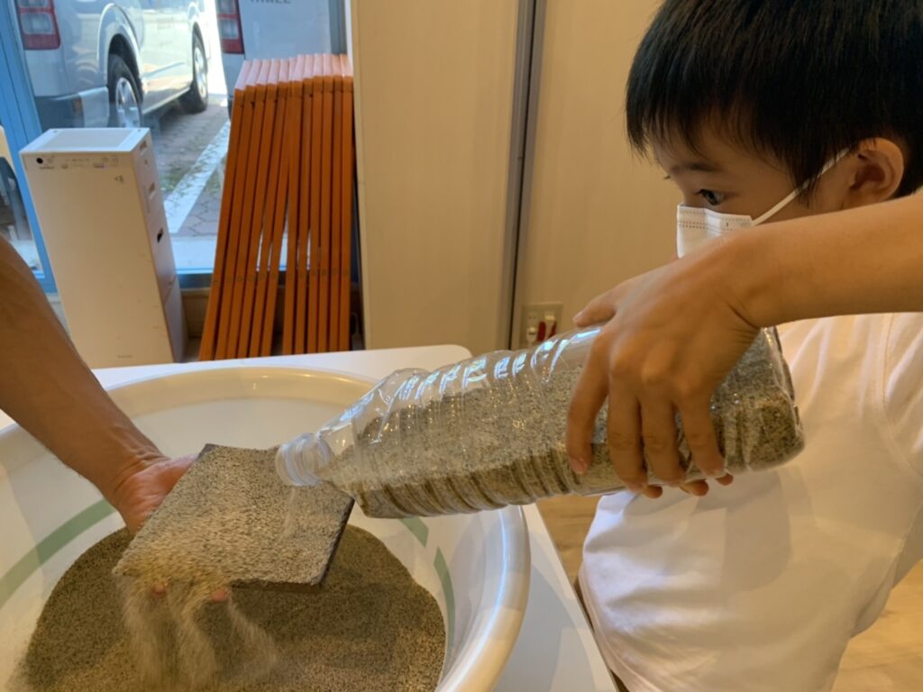 本物の砂やアメリカのビーチで拾った貝がらを使って