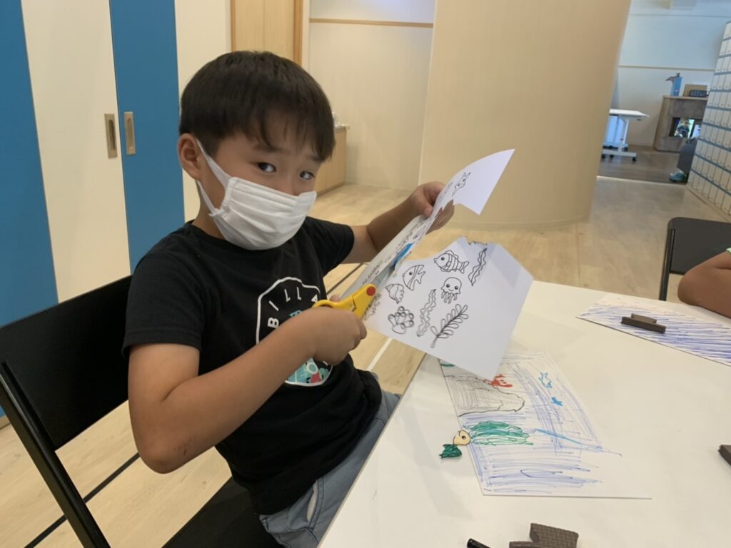 海の中の様子を描いたり、カラフルに色塗りをしました!