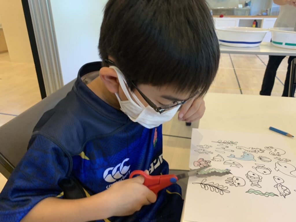 のんびりだけどとっても丁寧に色塗りや切る作業をする子