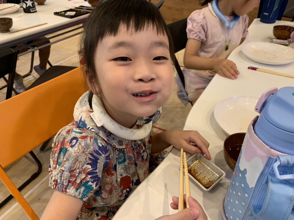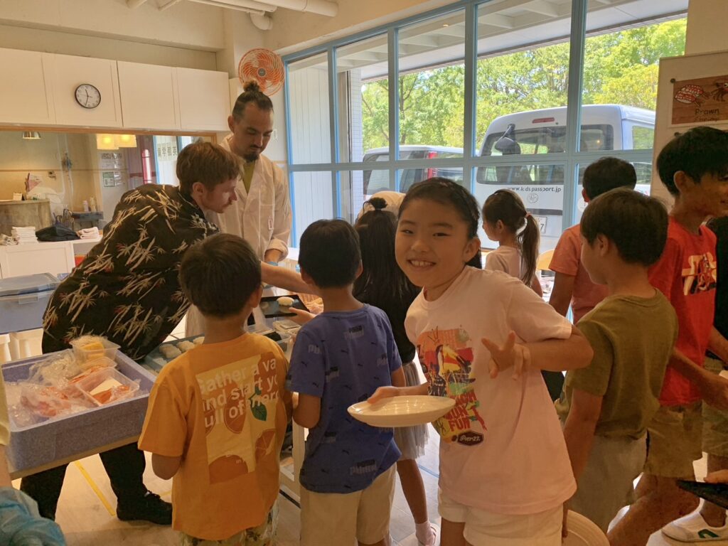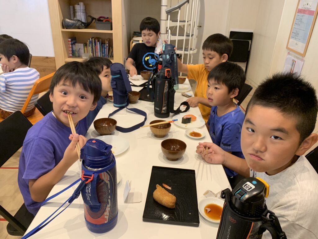 お寿司がみんなのテーブルにくると、みんな目をキラキラさせていました