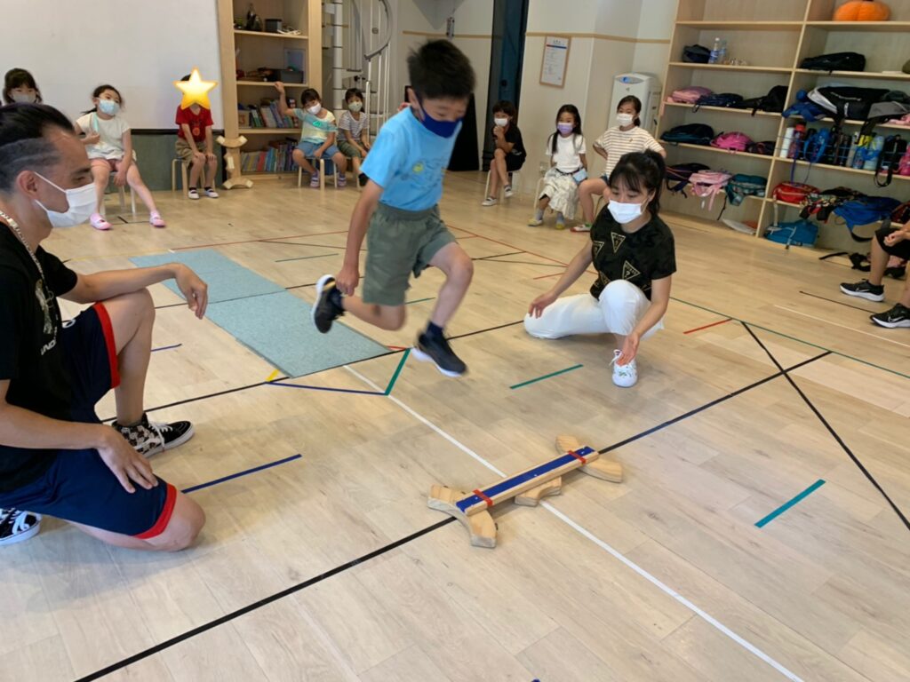 屋根を飛び回る忍者の動きをまねてマットや板を使ったジャンプに挑戦!