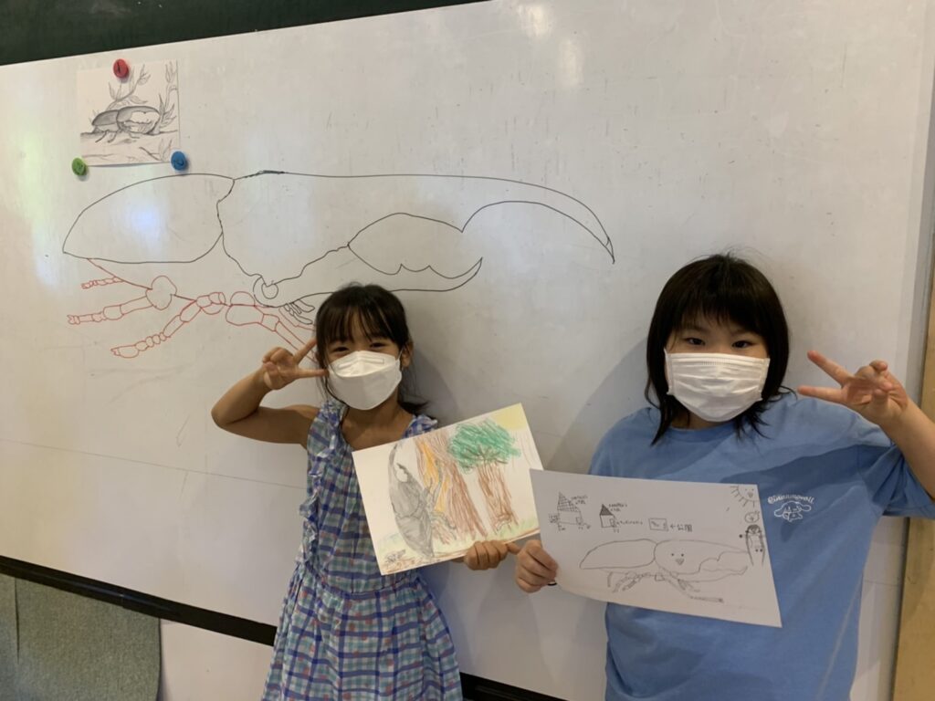 それぞれ個性的なカブトムシの絵を完成させていました!