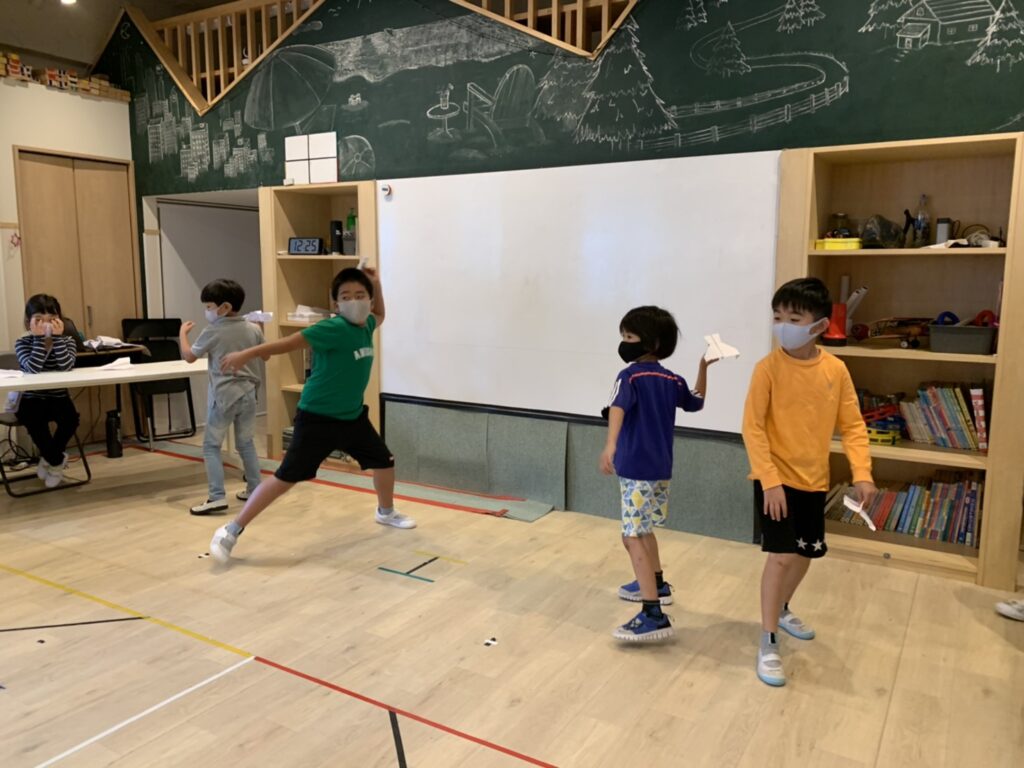 みんなで紙飛行機を作っているときに今日はたくさん英語がきこえてきました