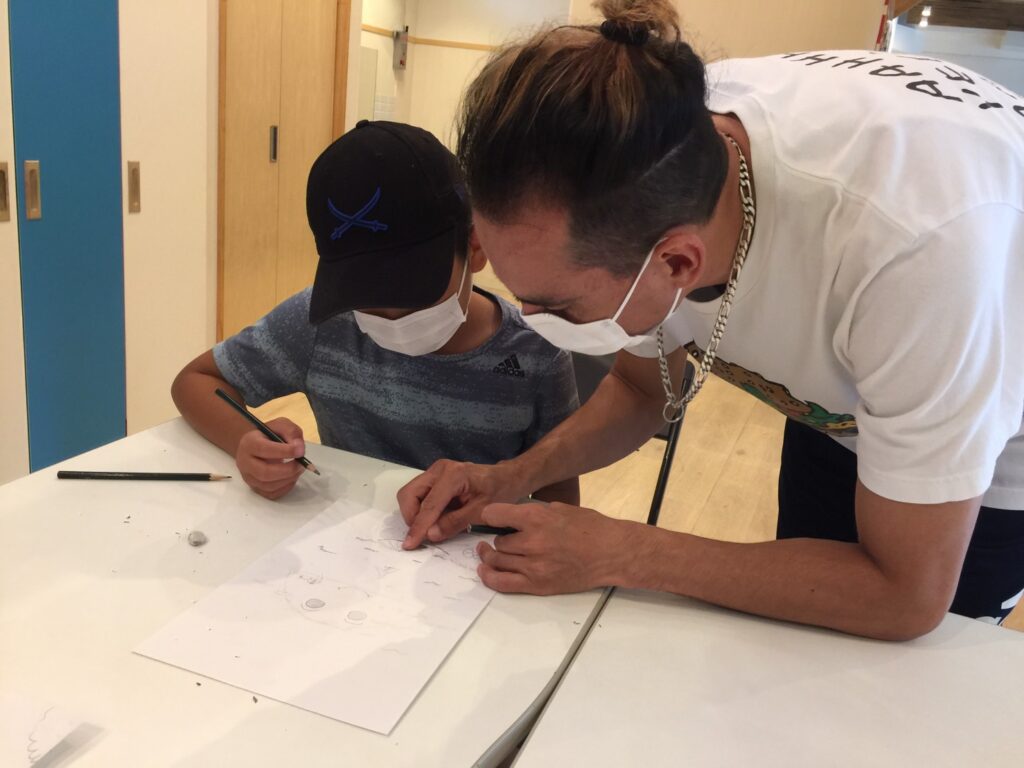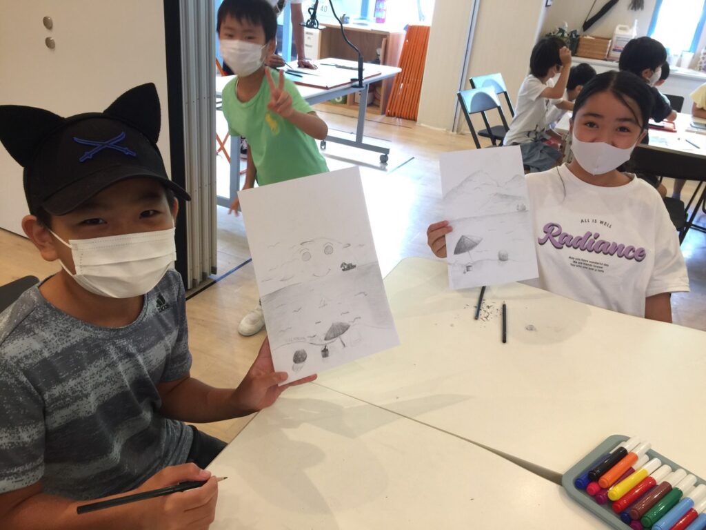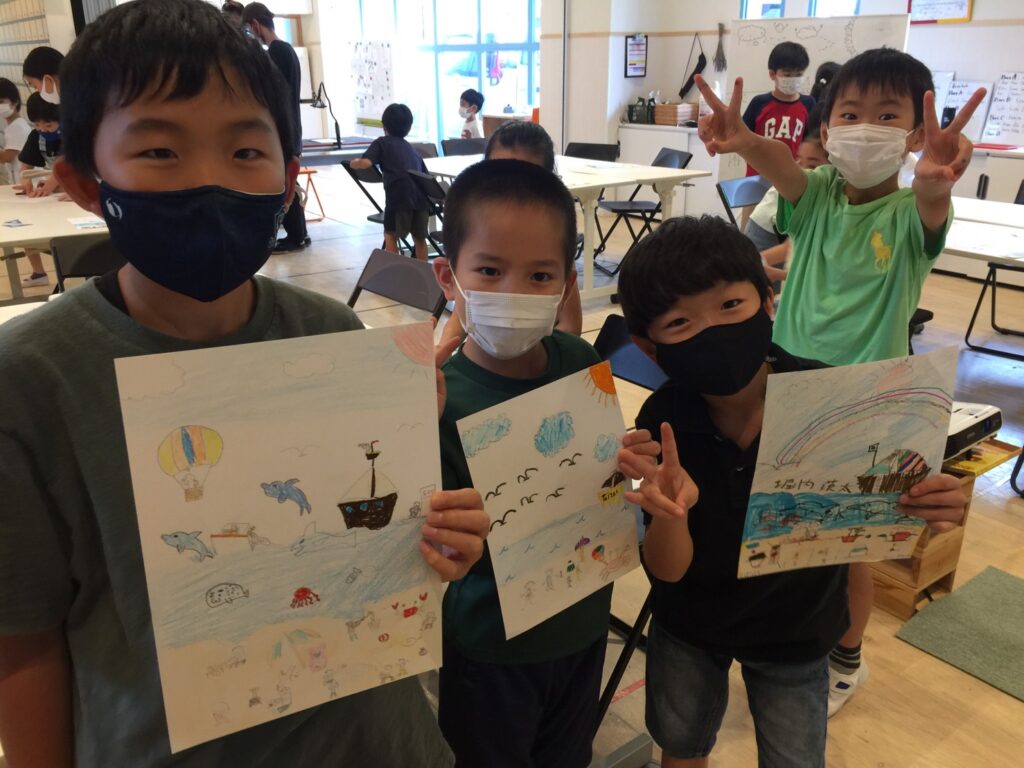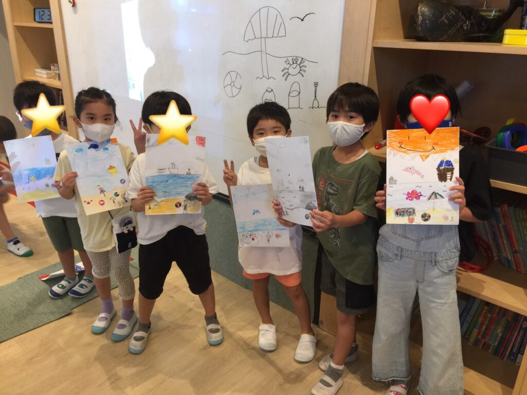 楽しい海でのシーンの想像を膨らませ描き進めていきました