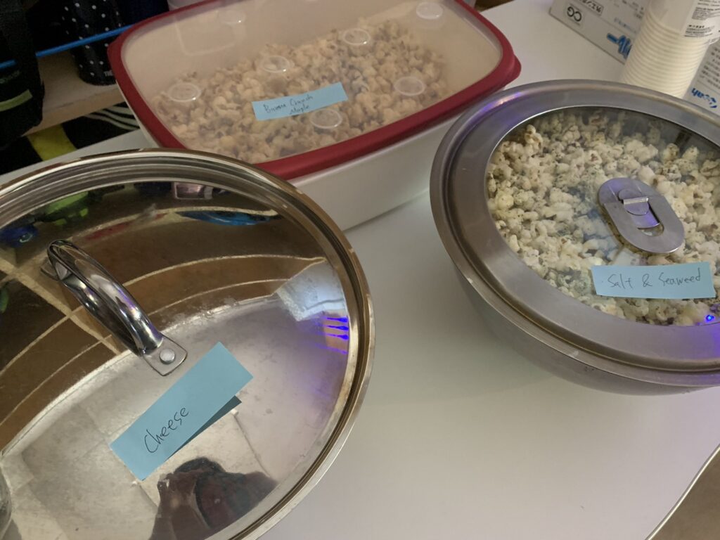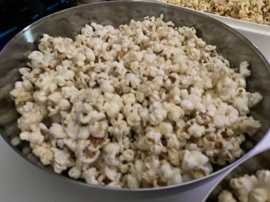 (今日のポップコーンの種類は塩、のりしお、バナナメープルとチーズでした)