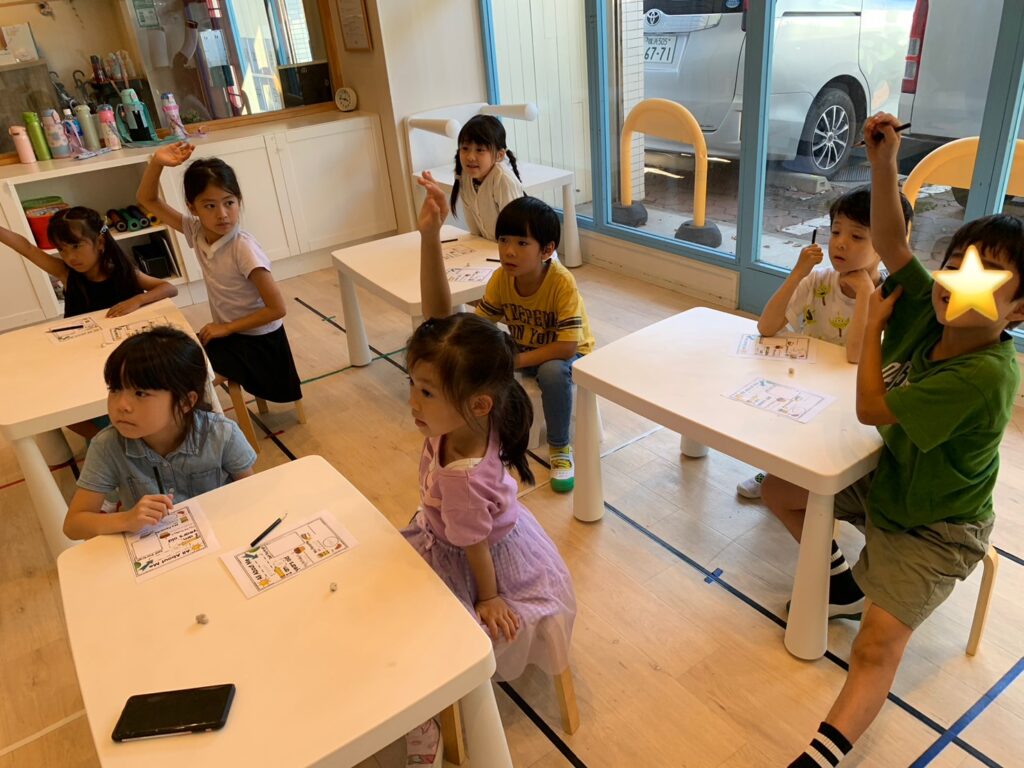 と先生が質問をすると手をあげるだけでなく、