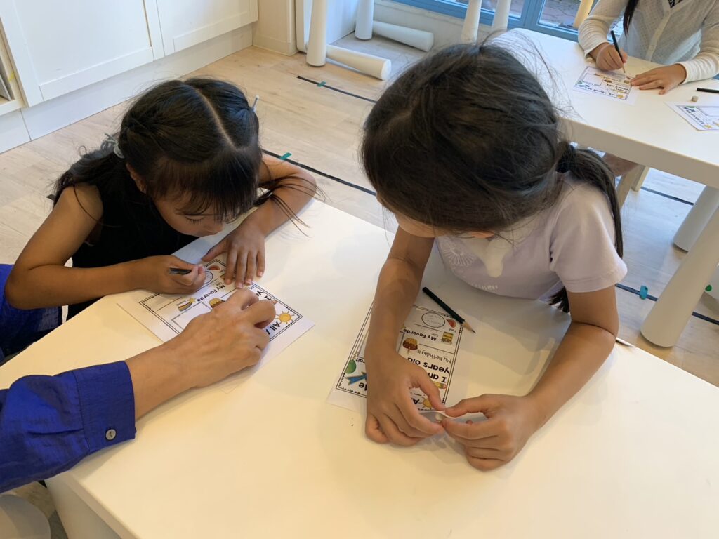 ポップなワークシートを使いながら埋めていきます。