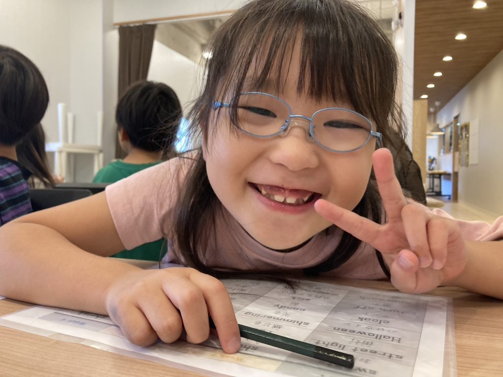 ワークショップもストーリーに出てくる単語を学んでいます!今日の単語は、candy(あめ)shadow(影)witch(魔女)などハロウィン関係の単語がたくさん出てきました!