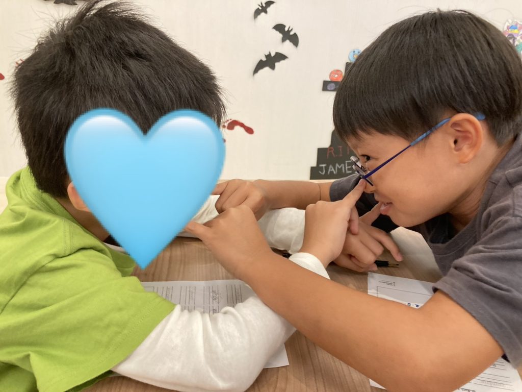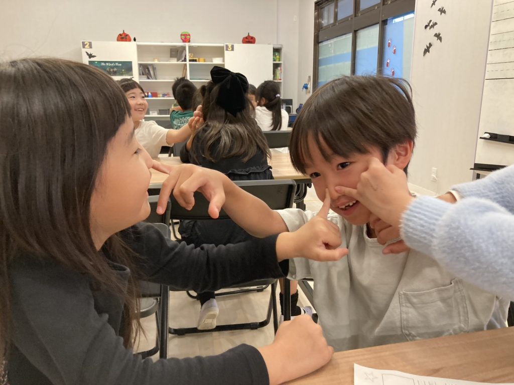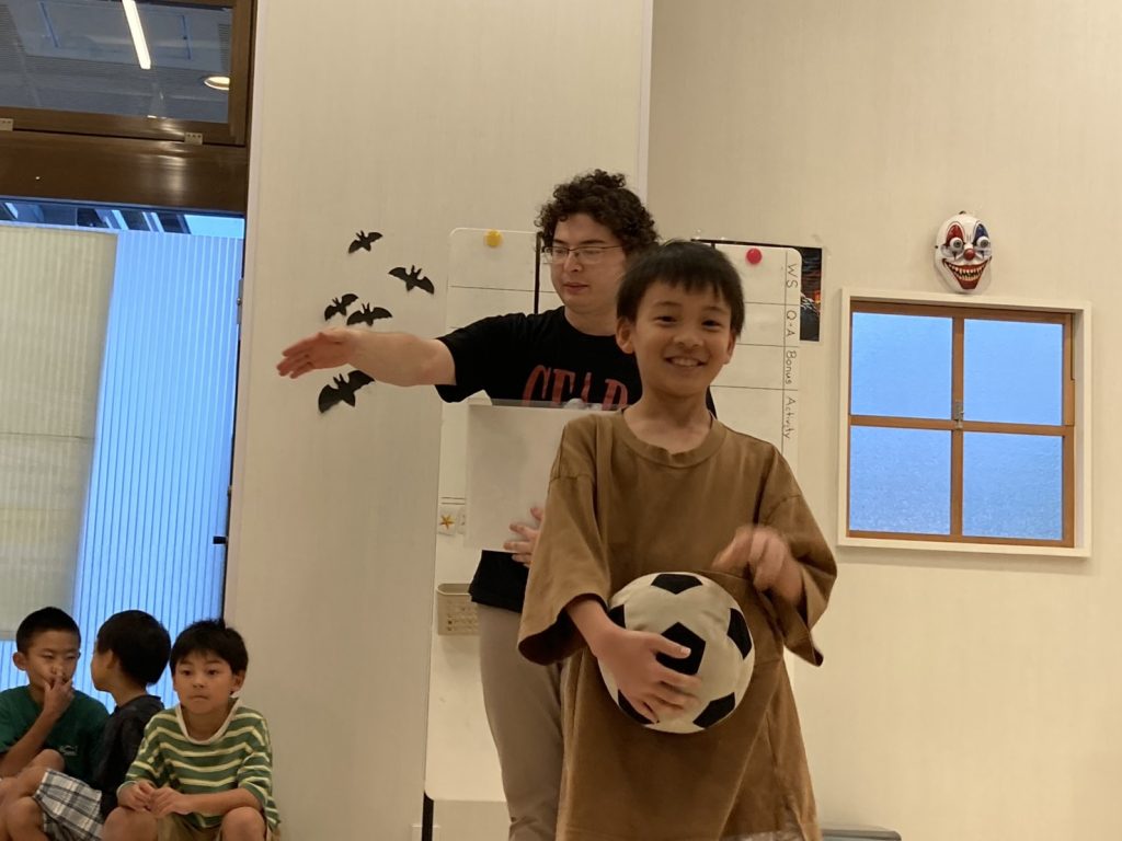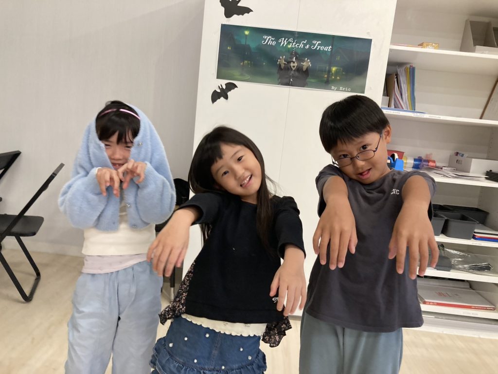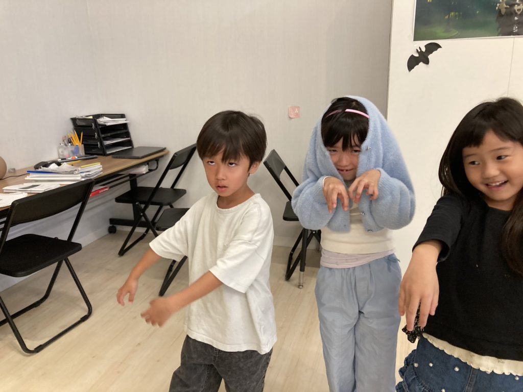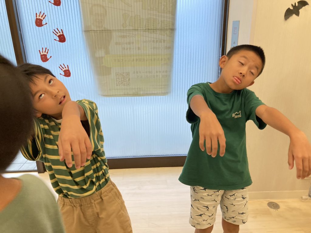 連休明けのKPは今日も元気にレッスンを行いました!ワークショップでは、zombie(ゾンビ)やwitch(魔女)などハロウィンの単語が出てきました!ワークショップでもチーム対抗でアクティビティを行っていて、今日のお題はゾンビのジェスチャー!一番本物のゾンビに似せることができたチームは1ポイントゲット!みんな渾身のゾンビジェスチャーを披露してくれました!本当にみんな上手です!(笑)