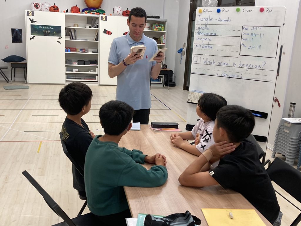 一方、ナイトコースもパワー全開です!ジャングルに潜んでいる動物について動物の名前を先生から教えてもらったり、自分の意見をアウトプットしながら、英語力をあげています!!