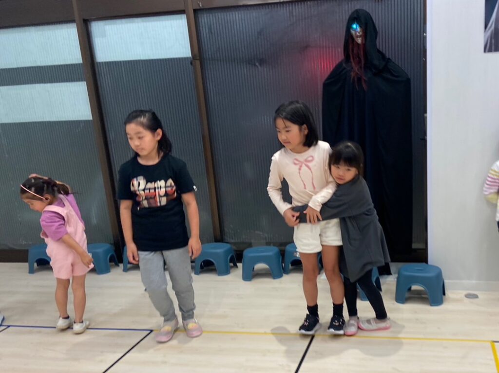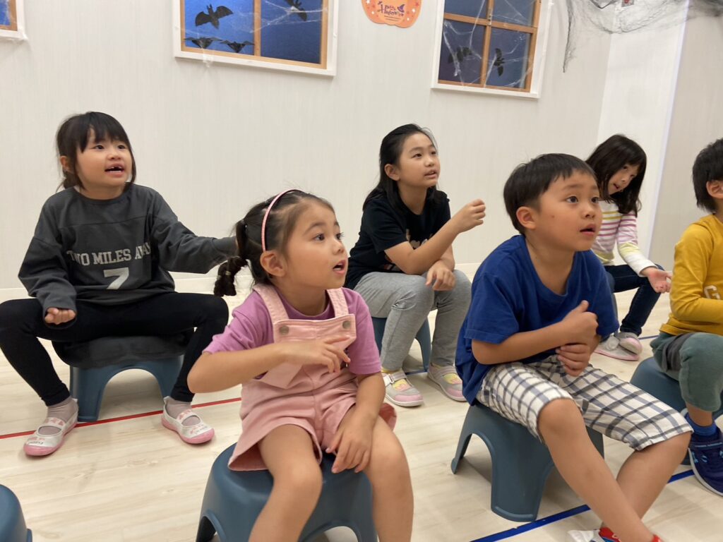 と部屋が暗くなり、少し怖がり出す子どももいましたが、安心するよう声をかけてくれる上級生も。 Nice work!