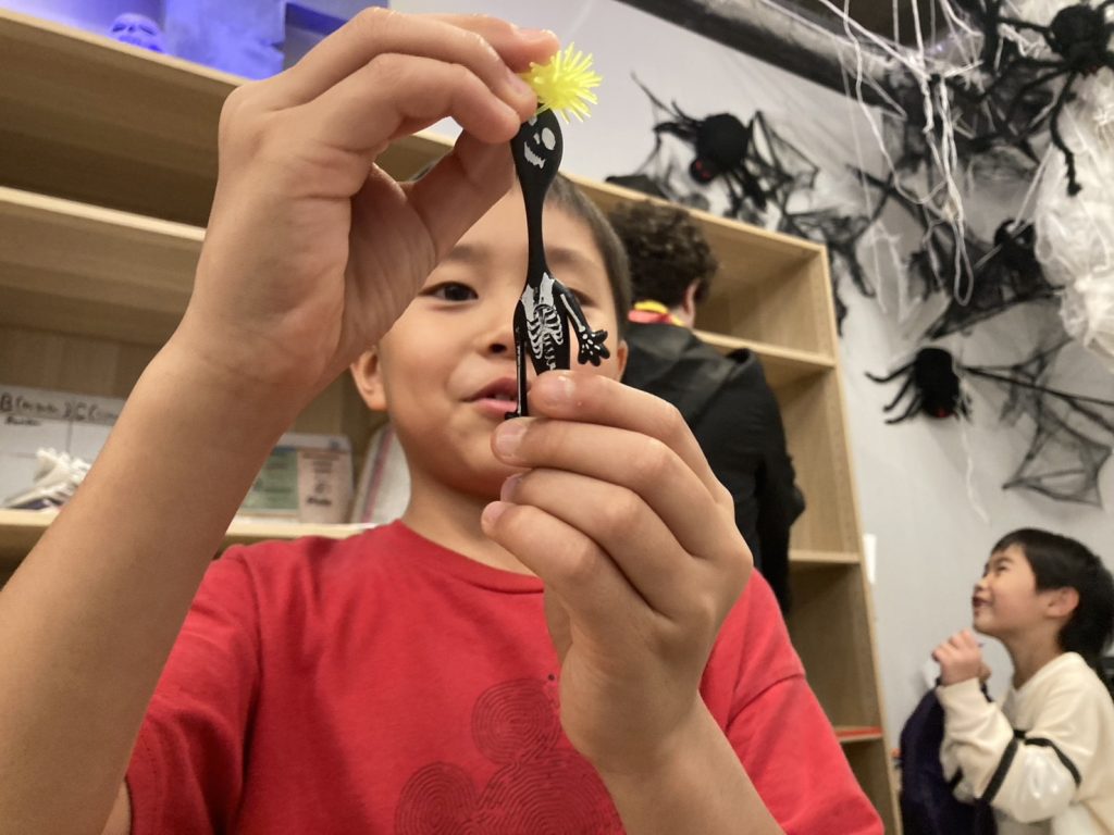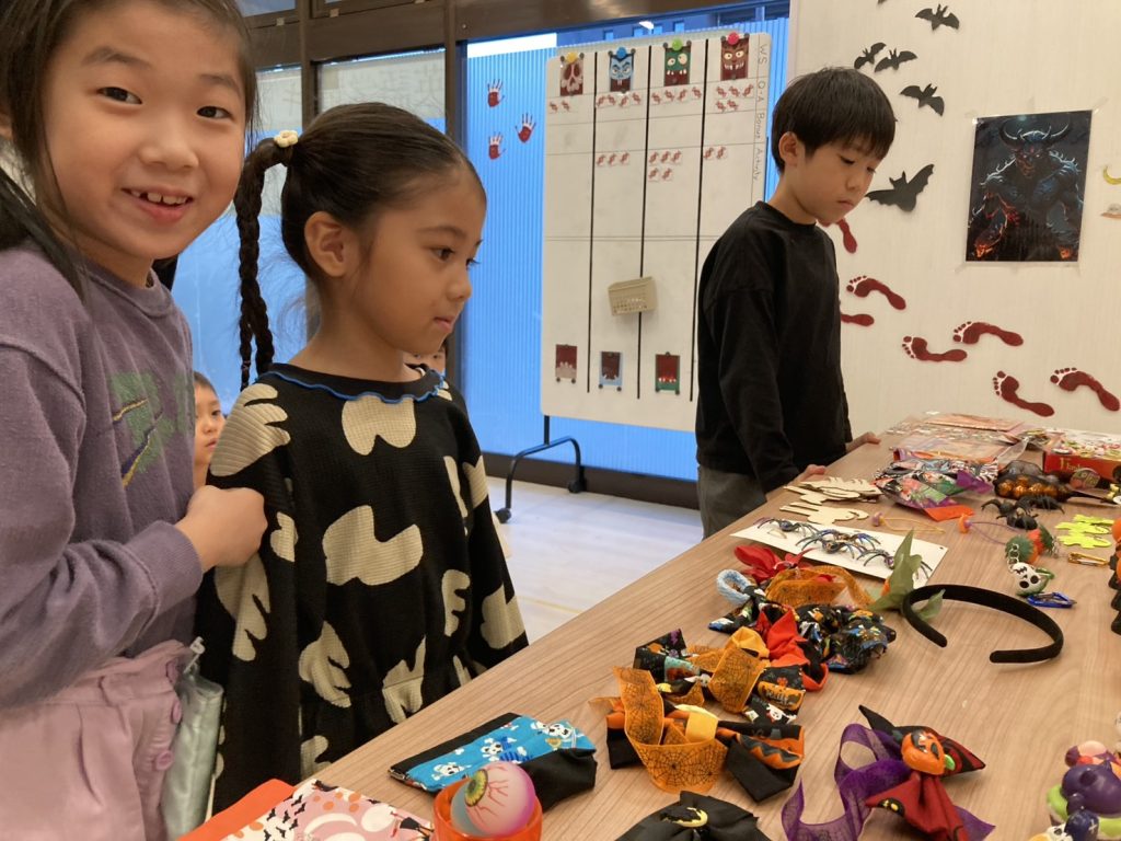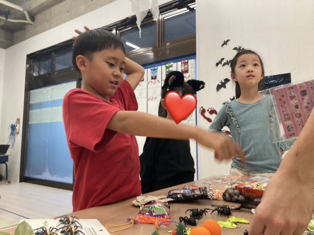 今日は待ちに待ったハロウィンデー1日目でした!!やはり最初の目玉のイベントといえばハロウィンショップでしょう!特に今年から入った生徒は前回のスピーチコンテストを経て、貯めたポイントを使うのでハロウィンだけではなく達成感も味わう事ができ、目白押しが多い日になったのではないかと思います!!貯めたポイントで好きなキャラクターのシールを勝ったり、ハロウィンのおもちゃ買ったりと、品揃えも目白押しでした!!まだまだハロウィンのイベントがたくさんあるから、生徒のみんなは楽しみにしていてね!!