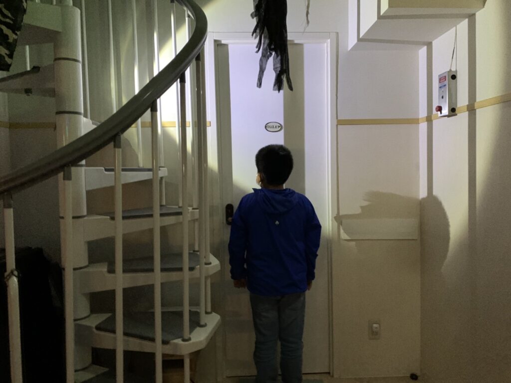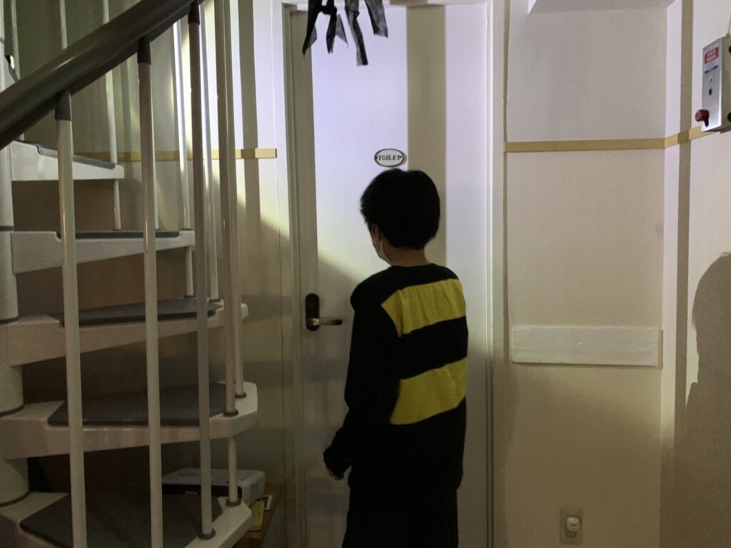 ドアの前に立って”Trick or Treat”と言い先生が出てくるのを待ちます