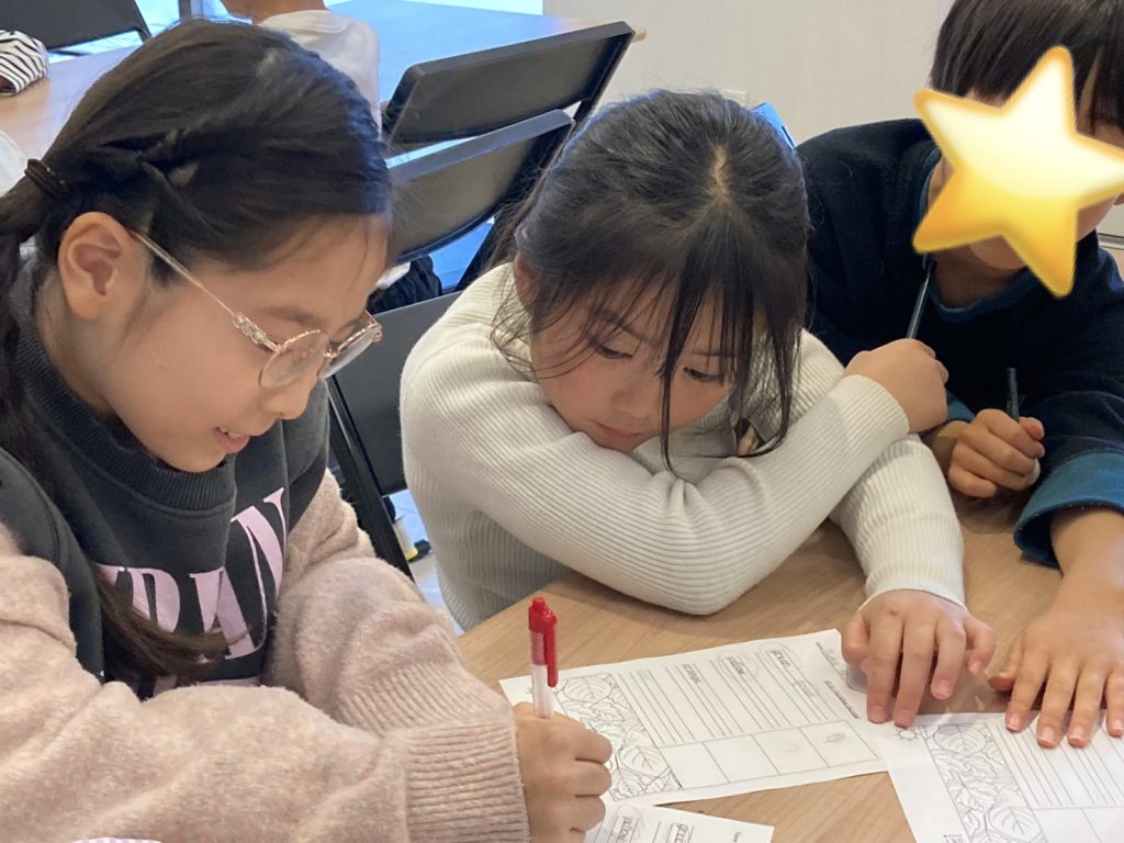 今週からのワークショップはアートのアクティビティでした!恒例のスペリング練習はもちろん、生徒達がわくわくするような企画をたくさん入れました!!そしてやはり、アートといえば「色」がつきものなので、色に関する課題は数多く出しました!!特に盛り上がったのが制限時間以内に赤の物を何個言えるかチャレンジと思いついた赤い物が他のチームとかぶってないかチャレンジしてみました!!どっちも頭の柔らかさとチームでの協力が必須でした!!どのポイントを大量生産していました!!